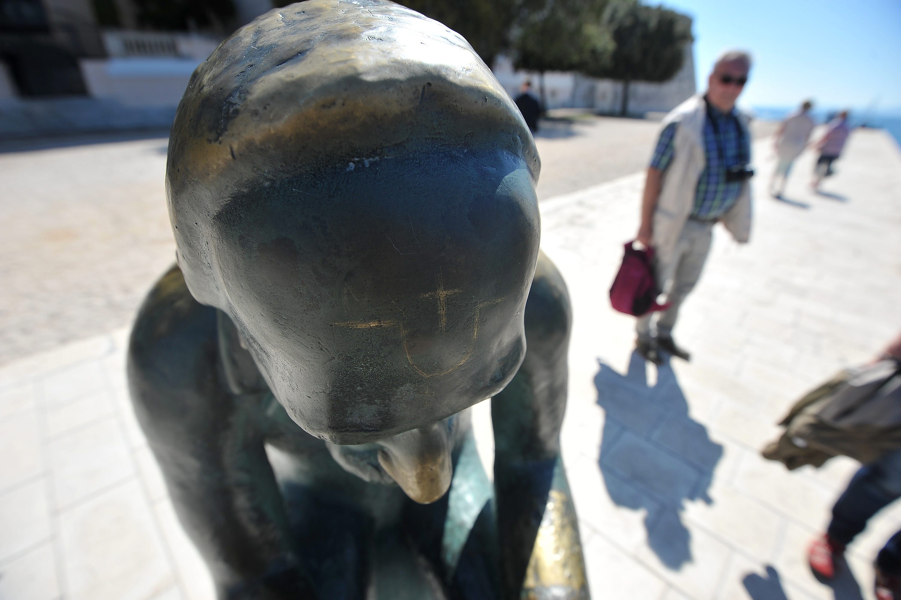 Kip velikog zadarskog znanstvenika Špire Brusine, koji stoji na zadarskoj rivi, oskvrnuli su nepoznati vandali urezavši na čelo kipa ustaško slovo "U".