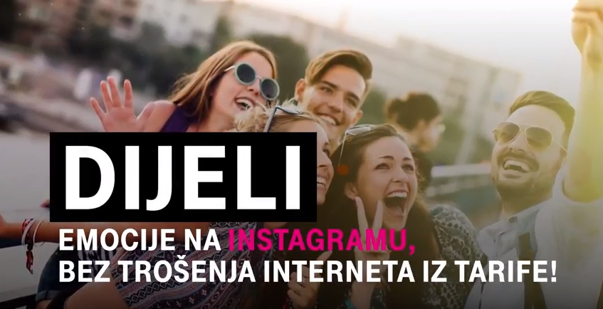 Novost je da možeš izabrati jednu aplikaciju koja ti isto neće trošiti internet iz tarife, a možeš birati između Instagrama, Facebooka, Messengera, WhatsAppa, Vibera ili Deezera. Bezbrižno razmjenjuj doživljaje, novosti i emocije fotografijama, video porukama ili emotikonima i budi uvijek povezan. Jedan mjesec Instagram, drugi mjesec Facebook – mi te pratimo, svaki mjesec možeš mijenjati aplikaciju koju želiš da ne troši gige, bez ikakve dodatne naknade.