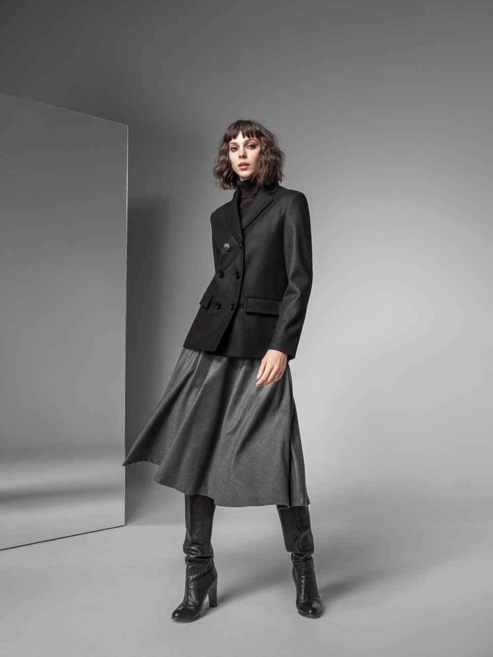 Odabire kaput koji prati liniju tijela bez nepotrebnih dodataka. Kaput strogih linija u military trendu koji elegantno izdužuje svaku figuru ili vječni Montgomery model. Luksuzan osjećaj pri nošenju zahvaljujući kvalitetnoj tkanini od runske vuni i kašmirske dlake. Fuzija suprotnosti oštrog kroja i podatne, plemenite tkanine. Simetrično raspoređeni gumbi koji naglašavaju dosljednost i veliki džepovi za sve vaše najdraže sitnice. Autoritativna elegancija u svakoj prilici.