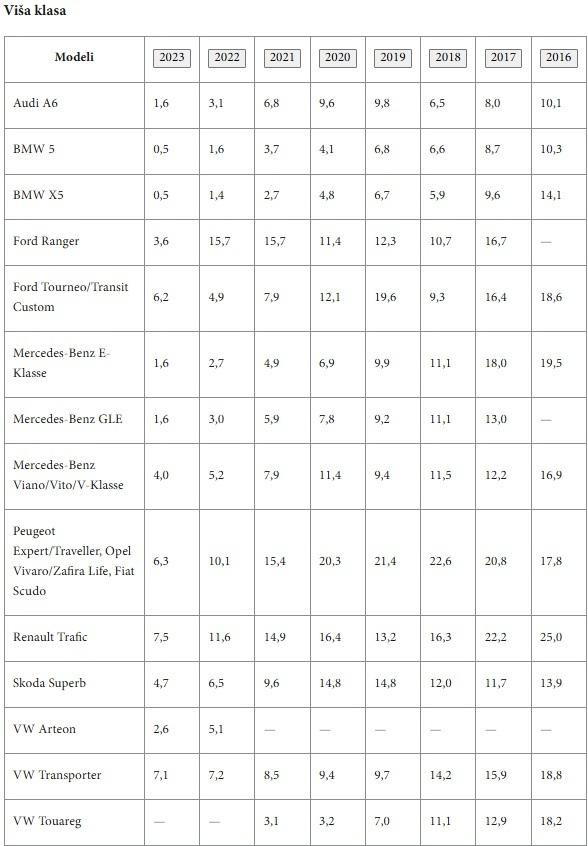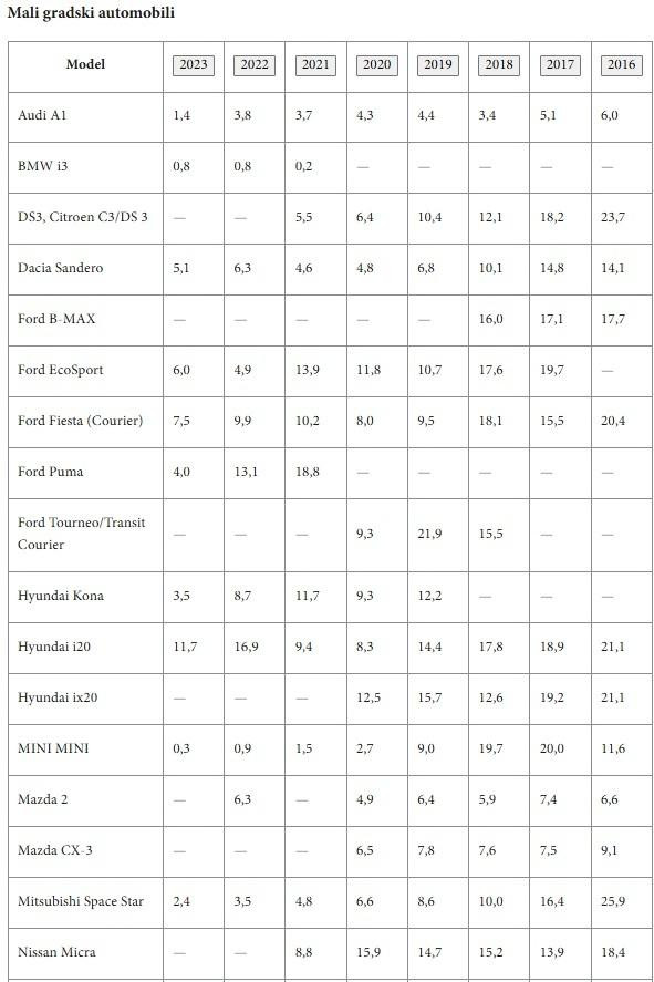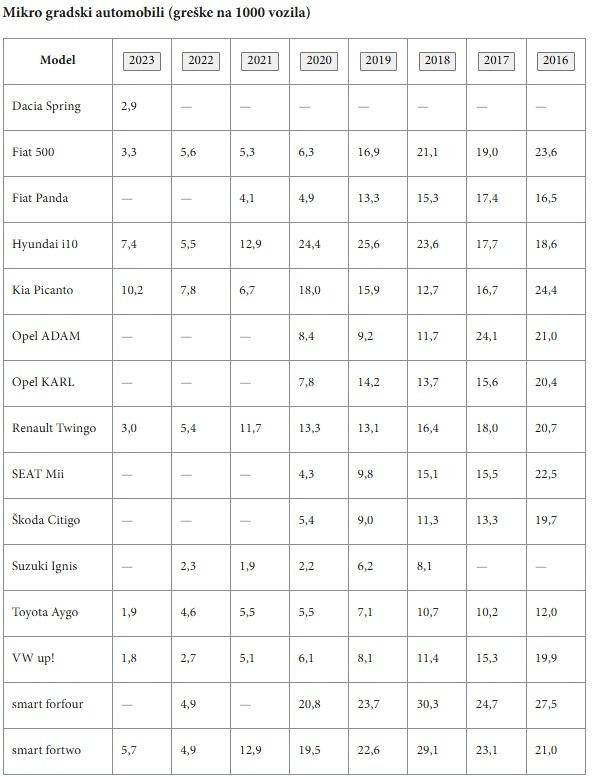 Trenutačna statistika kvarova analizira podatke o kvarovima ukupno 159 serija modela i daje detaljnu procjenu najpouzdanijih i najosjetljivijih modela vozila svih vrsta pogona. Nekoliko Toyotinih modela, koji su inače u prošlosti smatrani pouzdanima, pokazalo se sklonima kvarovima. Model s najvećom stopom kvarova je Toyota C-HR, prvi put registrirana 2020., sa 63,1 kvara na 1000 vozila. Ali i drugi Toyotini modeli imaju problema s pouzdanošću (Toyota RAV4, Yaris i Yaris Cross). Često su uzrok bili problemi sa startnim akumulatorom. Toyota je već odgovorila uvođenjem novih, snažnijih baterija, piše HAK.