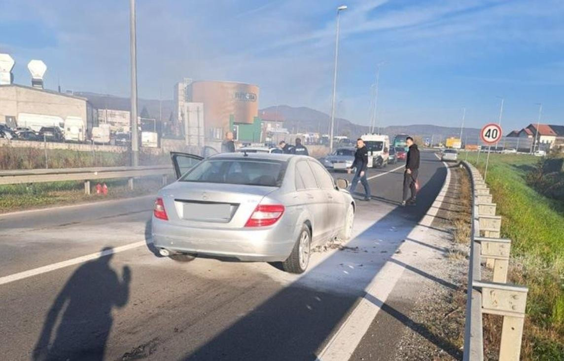 Danas ujutro oko 8 sati, na autocesti A4 (PČ Popovec), službenici Mobilne jedinice prometne policije su prilikom obavljanja redovnih aktivnosti nadzora prometa, uočili osobni automobil marke Mercedes koji se kretao u smjeru naselja Soblinec. Prilikom mimoilaženja, službenici su primjetili da se iz podvozja širi otvoreni plamen.
