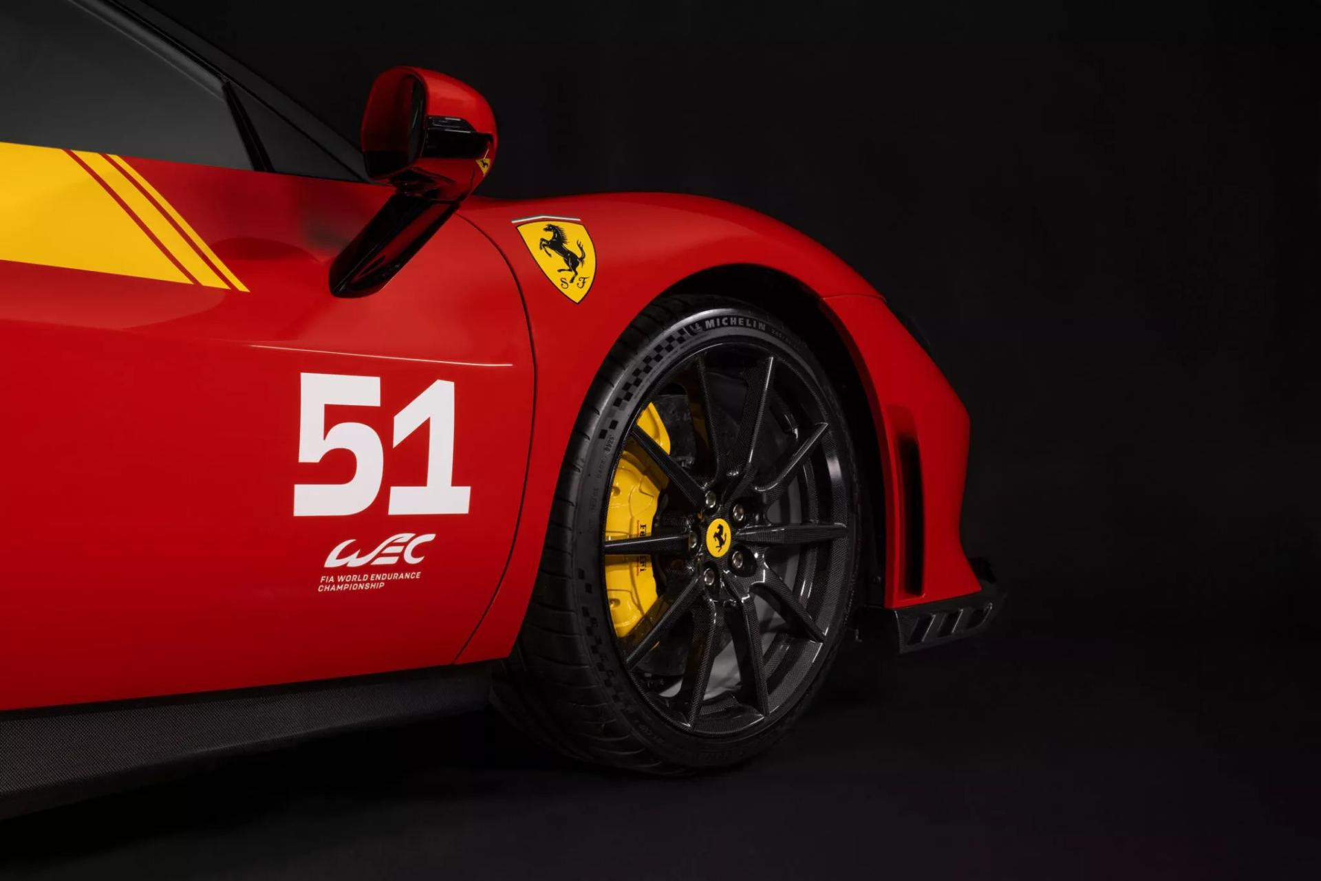 Kupci mogu birati između četiri trkaće boje karoserije: Rosso Scuderia, Blu Tour de France, Nero Daytona i Argento Nürburgring. Svaka je izvedba dodatno ukrašena ručnim oslikavanjem u stilu 499P-a, uključujući detalje u Giallo Modena žutoj, natpis WEC te motive talijanske zastave na prednjem braniku. Po želji kupca, moguće je personalizirati i "natjecateljski broj" vozila.