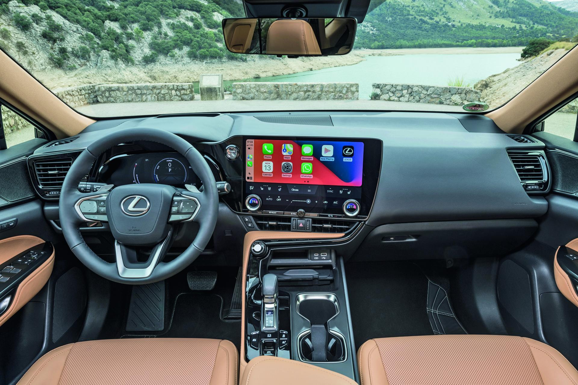 Koncept Tazuna, predstavljen upravo u modelu NX, čini sučelje potpuno intuitivnim, sve je podređeno vozaču, a ruke ostaju na volanu dok je pogled stalno na cesti. Na sredini armaturne ploče nalazi se 14-inčni dodirni ekran, jednostavan za korištenje i pregledan, uz podršku za glasovne naredbe. Atmosferu dodatno obogaćuje ambijentalno osvjetljenje s 64 nijanse, inspirirano japanskim prirodnim pejzažima.