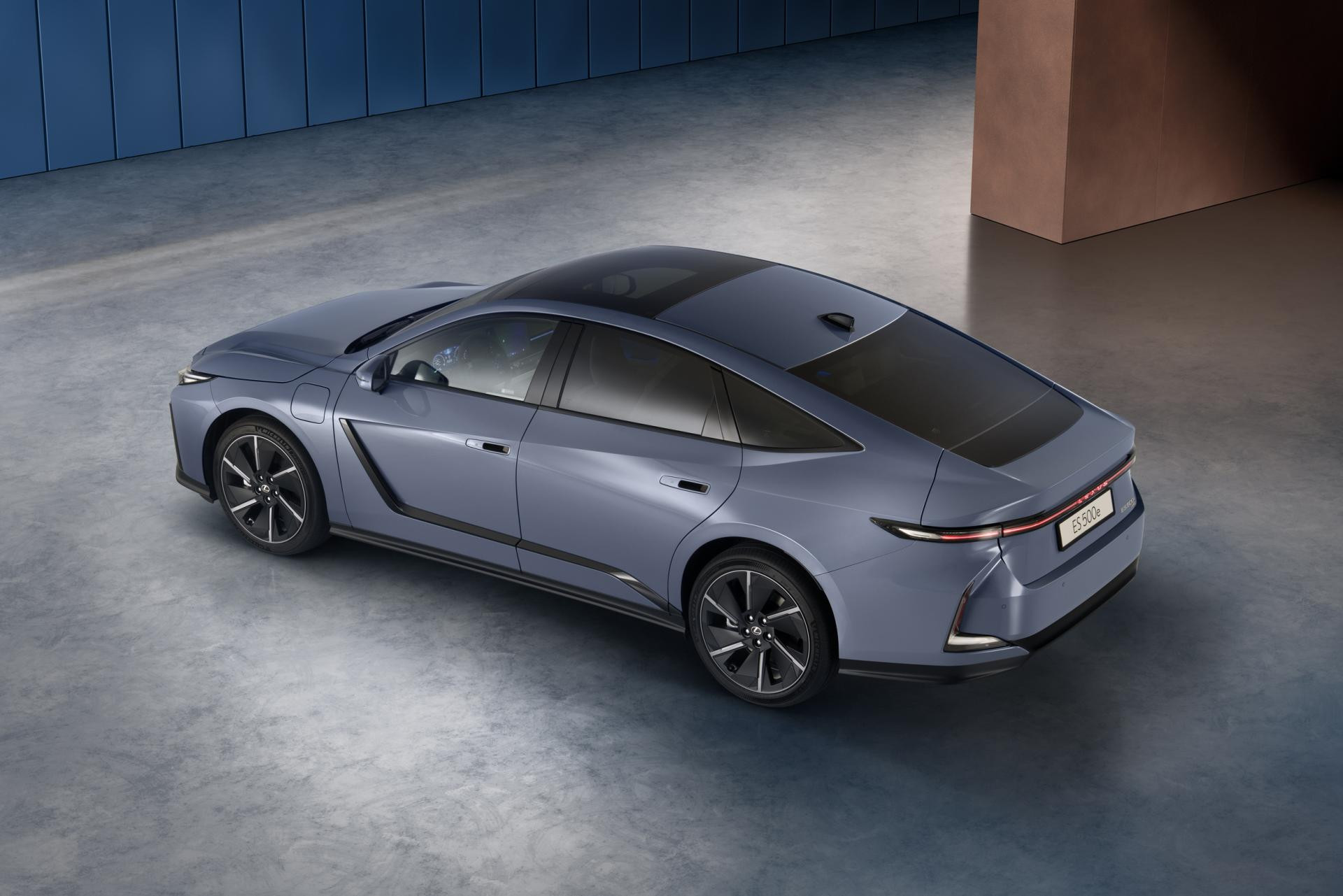 Na prvi pogled, ES osvaja svojim agresivnim i dinamičnim linijama. Coupeovski profil s niskim krovom i masivnim stražnjim krajem naglašava sportsku notu, dok elegantni detalji, poput tankih LED stražnjih svjetala koja se protežu cijelom širinom vozila, dodaju dozu sofisticiranosti. Novost je i dizajnerski odmak od prepoznatljive Lexusove "prednje maske". Naime, električna verzija ima minimalistički prednji dio s malom rešetkom, dok hibridna varijanta zadržava nešto veći otvor.