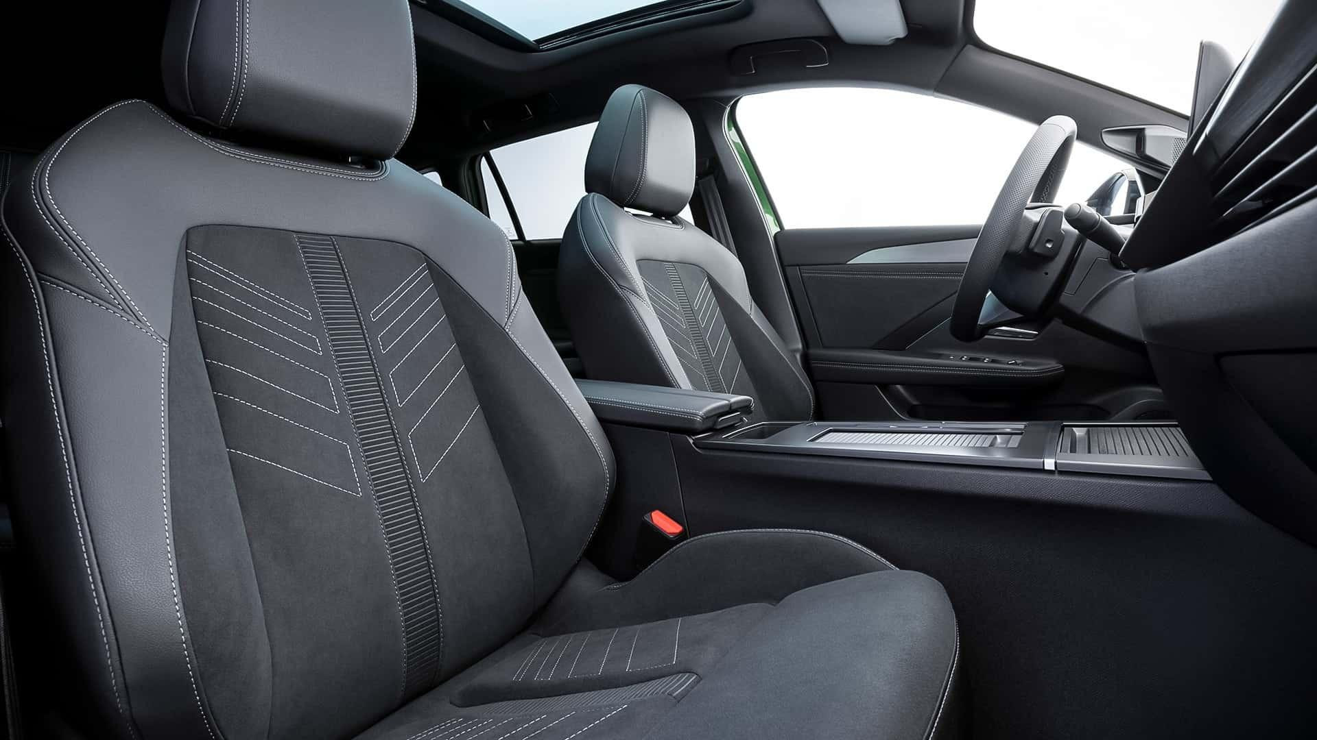 Unutrašnjost donosi jasniji dizajn i naglašen održivi pristup. Opel koristi isključivo reciklirane tekstilne materijale, dok nova Intelli sjedala u serijskoj opremi smanjuju pritisak na trtičnu kost zahvaljujući središnjem utoru. U bogatijim izvedbama dostupna su AGR-certificirana sjedala s ReNewKnit presvlakama, grijanjem, ventilacijom, masažom i memorijom.