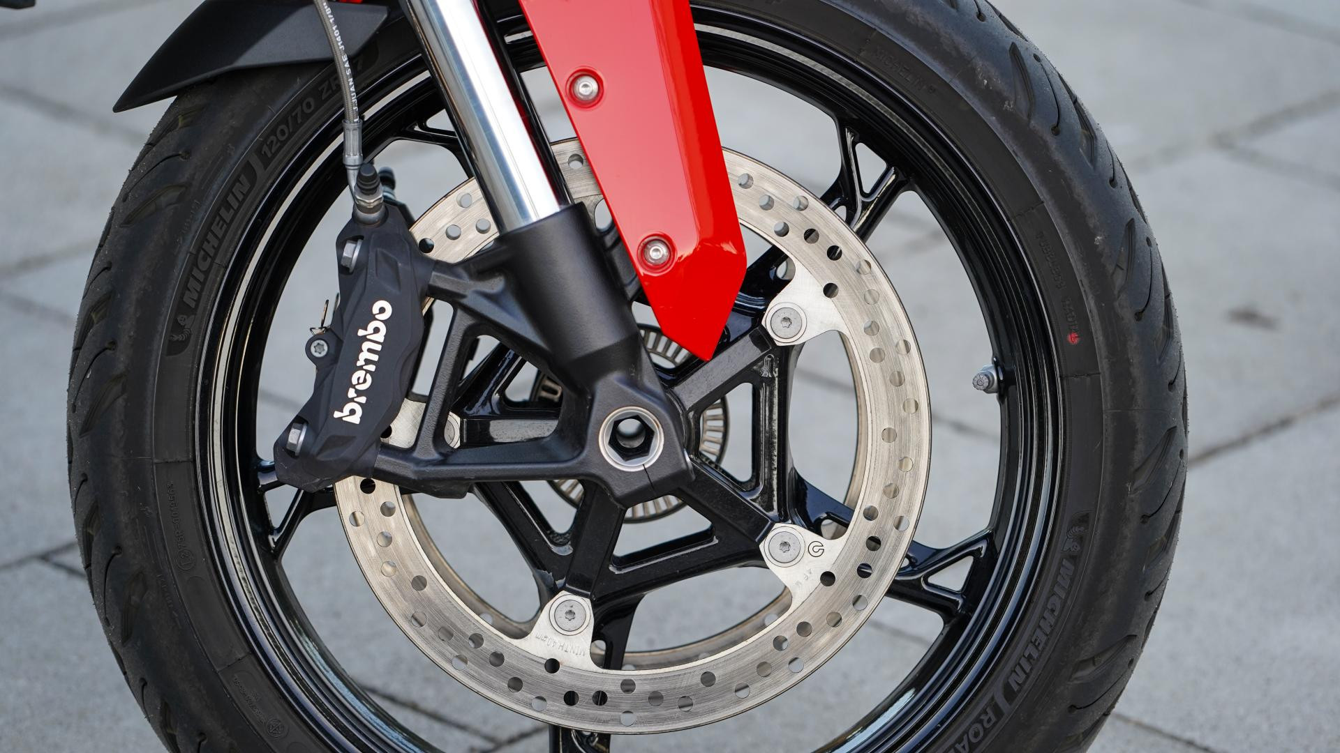 To se u vožnji jasno osjeća, pogotovo u brzim, a neravnim zavojima na autocesti. Upravljač je i dalje iznenađujuće iskren, pa nema dvojbe oko gripa na prednjem kotaču, a povjerenje ulijevaju i jasan osjećaj na ručici dvostrukih Brembovih radijalnih kliješta, kao i sjajne Michelinove cestovne gume Road 6 GT.