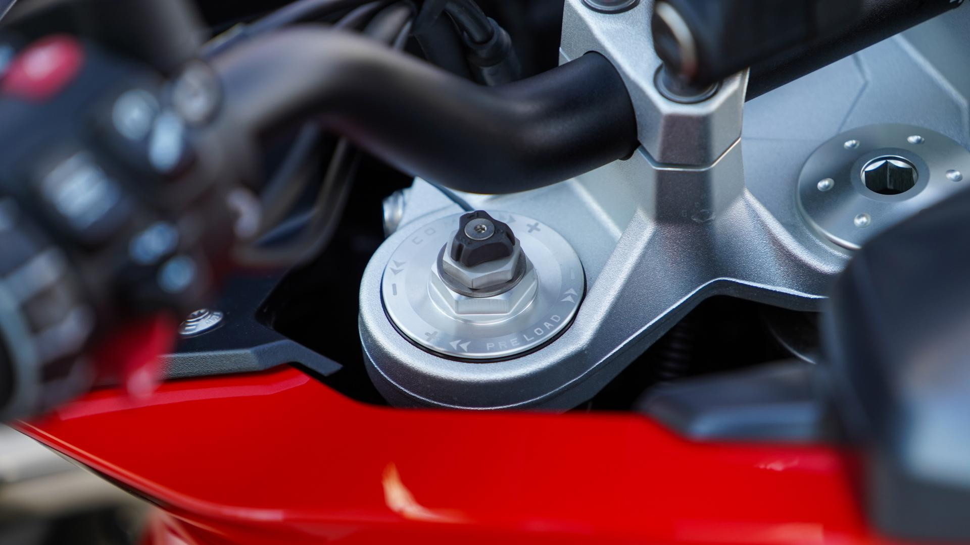 Riječ je o tri kilograma manje nego dosad, od čega čak 1,8 kilograma otpada na aluminijske naplatke od 17 cola. Prednost? Sada potpuno podesiva prednja vilica – ranije se podešavati moglo samo predopterećenje – lakše se nosi s manjim oscilirajućim masama, baš kao i po želji elektronički podesivi stražnji monoamortizer.