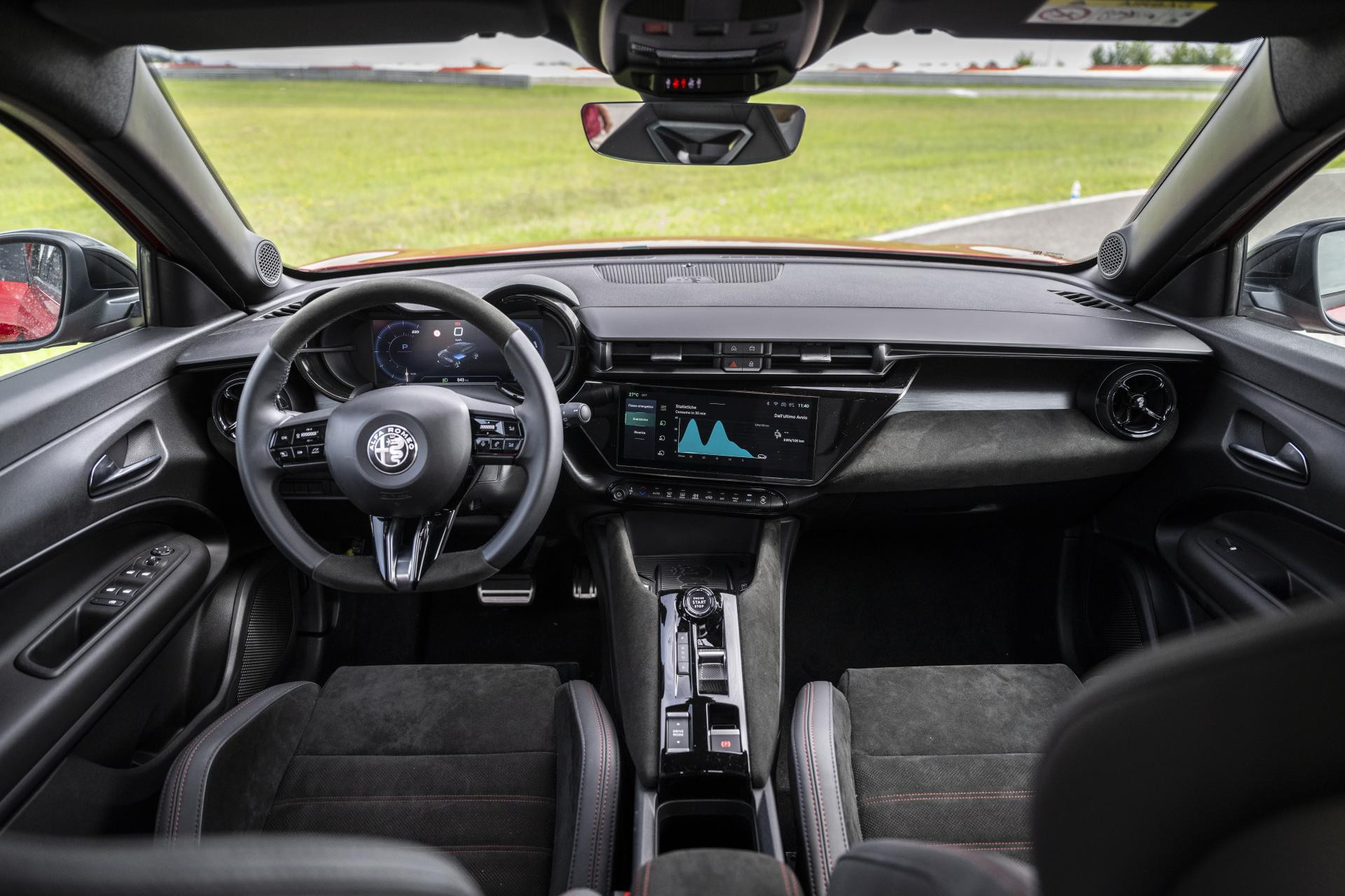 Vozačko je okruženje također tipično za Alfa Romeo, sa središnjim dijelom blago zakrenutim prema vozaču, digitalnim instrumentima koji imitiraju klasični dizajn s dva okrugla mjerača i okruglim bočnim otvorima ventilacije – od svih modela nastalih na ovoj tehničkoj osnovi unutar koncerna Stellantis, kod Juniora ćete to srodstvo posljednje uočiti.