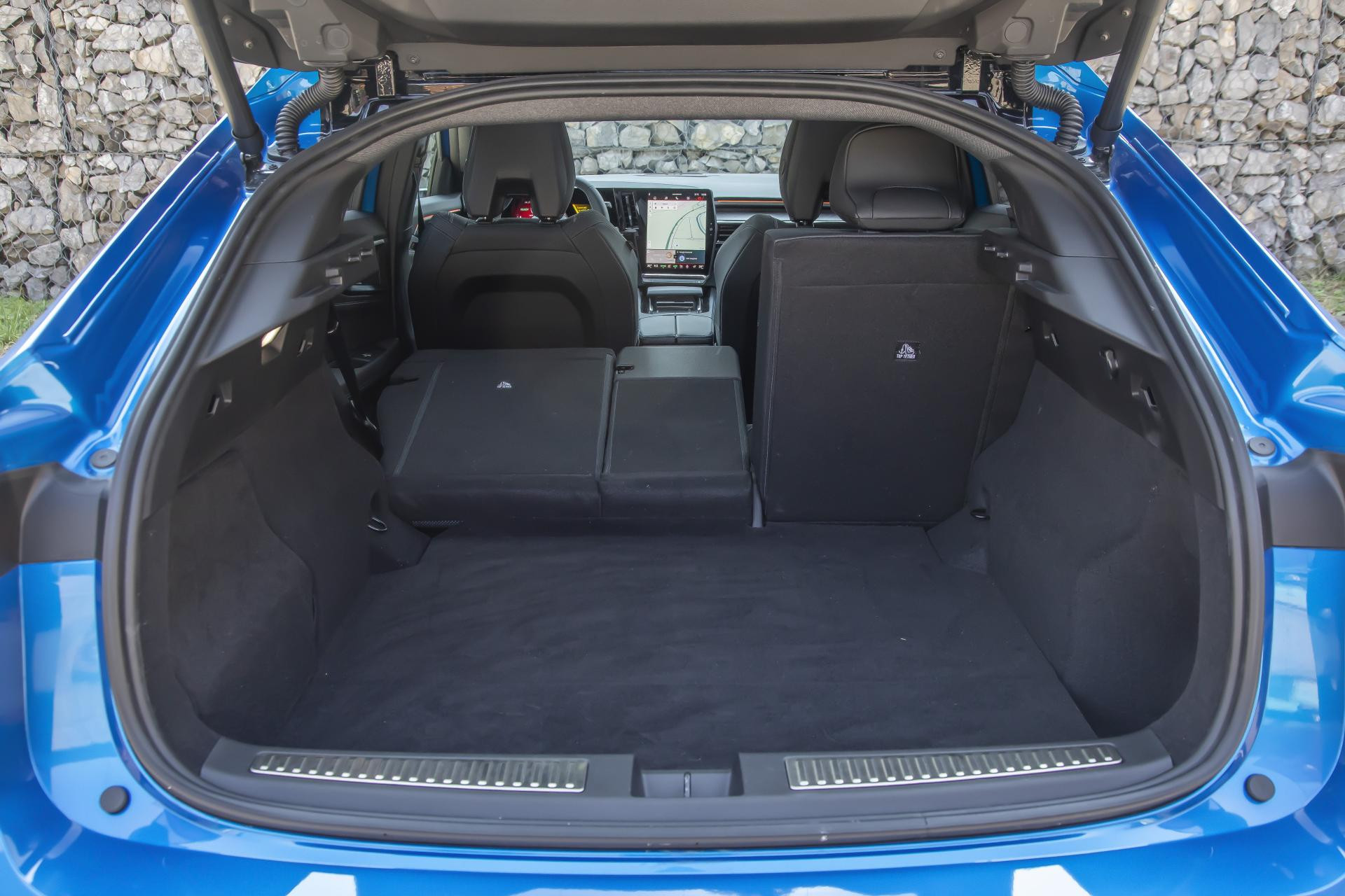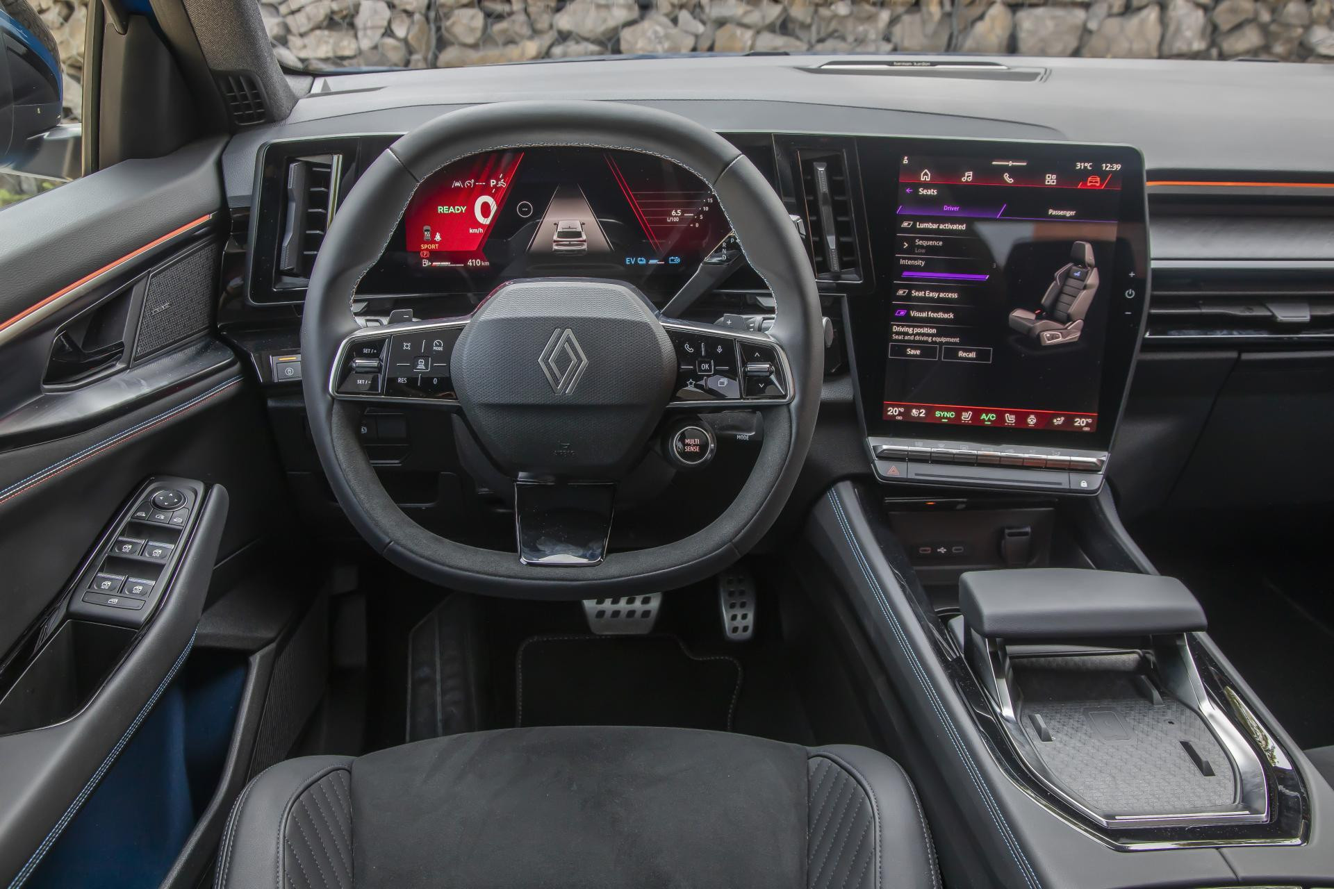 Unutrašnjost, pak, s digitalnom instrumentnom pločom, ručicom mjenjača iza gotovo četvrtastog upravljača i središnjim pretincem s ručicom kao u zrakoplovima, već poznajemo još od 2022. i električnog Meganea E-Tech. Uz osovine razmaknute čak 2,74 metra, mjesta ima u izobilju, i to ne samo sprijeda nego i straga (i za koljena i za glavu), a tijesno nije ni u prtljažniku od 532 litre (litij-ionska baterija ugrađena je ispod prednjih sjedala).