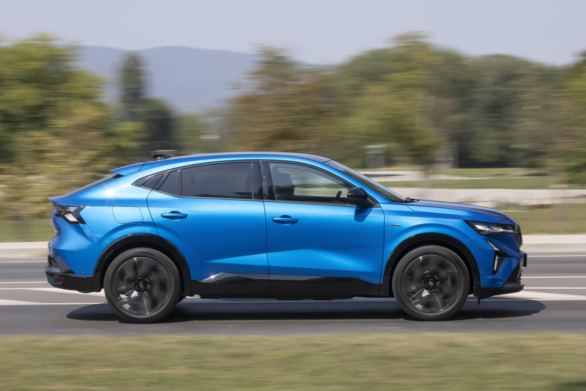 Rafale je coupé SUV, koji se protegnuo na ponosni 4,71 metar, uz tri centimetra niži krov (161 cm) i čak četiri centimetra širi trag kotača (163 cm) u odnosu na obični SUV Espace. I zahvaljujući oštrim linijama, ali i detaljima poput prednje maske od minijaturnih rombova, izgleda spektakularno, pogotovo u plavoj boji Alpine i s aluminijskim naplacima od 20 cola.