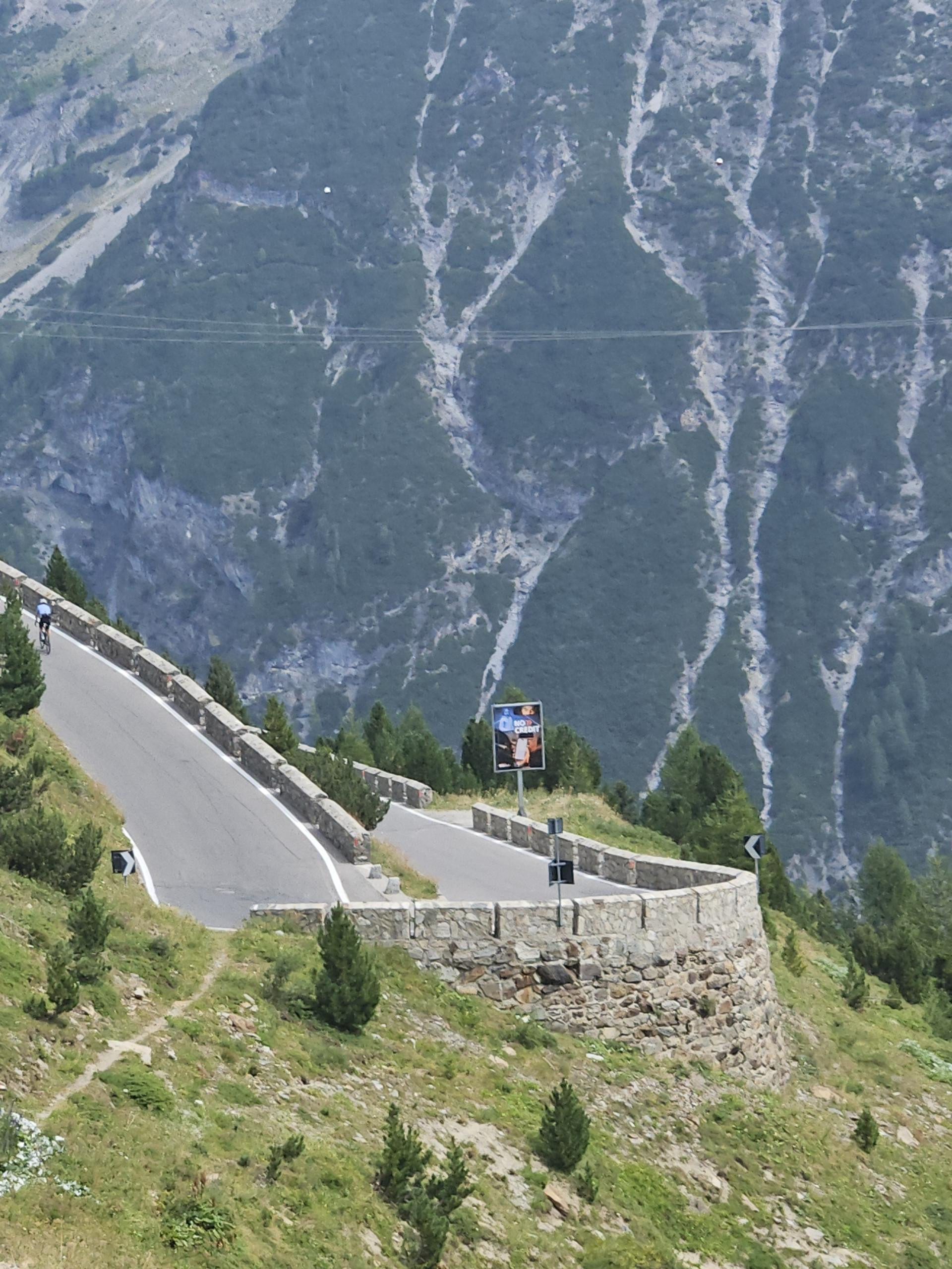 Uglavnom, do prijevoja Stelvio krenuo sam se uspinjati oprezno jer zavojiti put obiluje nepreglednim zavojima, zbog čega valja stalno biti na oprezu, jer je cesta dvosmjerna. Iza svakog od 48 zavoja otkrivala mi se nova perspektiva, pa sam se nekoliko puta zaustavio kako bih se u miru divio planinama. Kako sam se uspinjao prema vrhu, šume su prepuštale mjesto pašnjacima, da bi se pred kraj uspona našao okružen goletima, na čijim vrhovima snijega ima i u kolovozu.