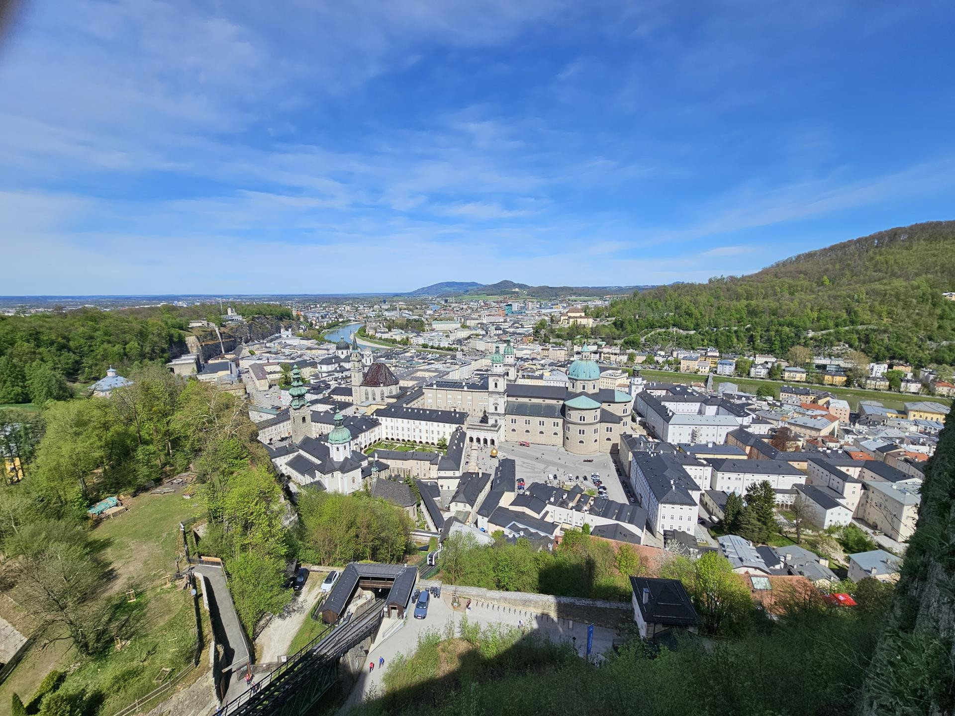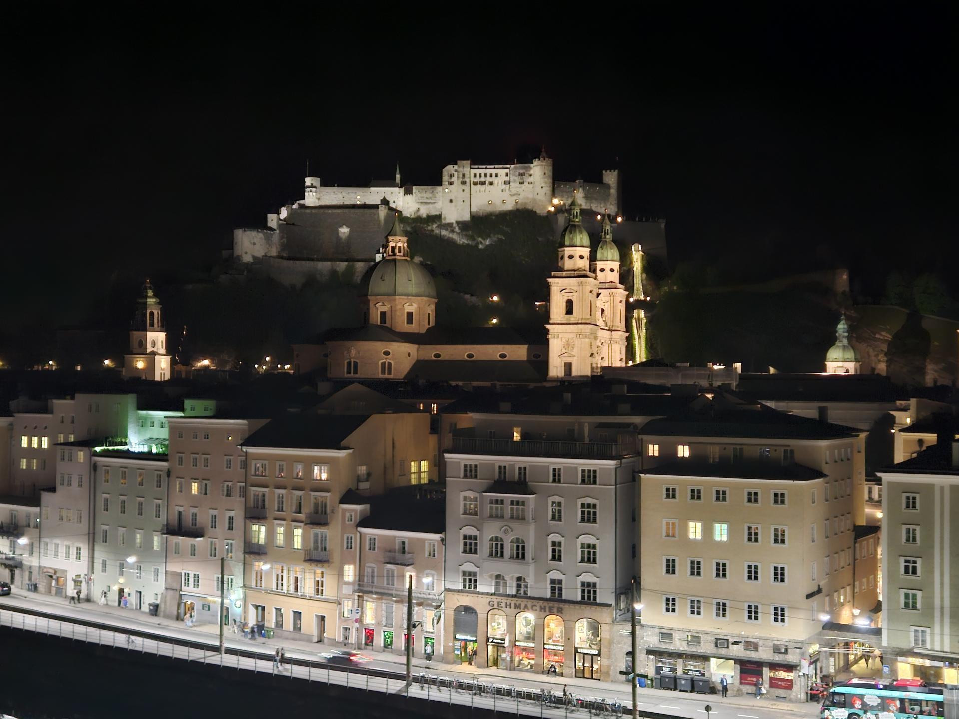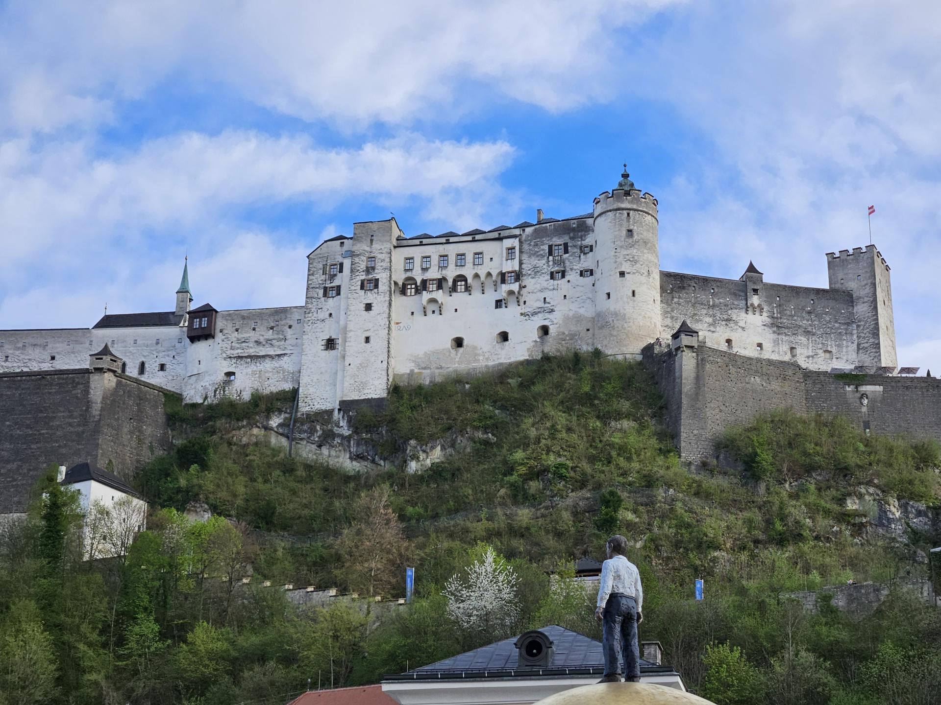 Najbolje se grad vidi sa zidina tvrđave Hohensalzburg za koju kažu da je riječ o najvećoj potpuno očuvanoj utvrdi u Srednjoj Europi, ali se do tog impresivnog golemog povijesnog zdanja nisam uputio pješice, dosta strmim putem, već uspinjačom koja vozi tek pola minute iz podnožja do zidina za 14,5 eura, ali je u cijenu uključen i posjet nekolicini muzejskih izložbi.