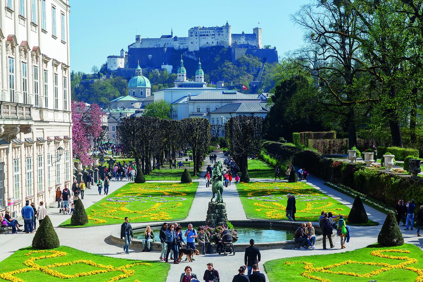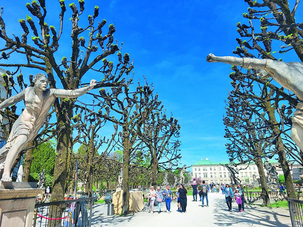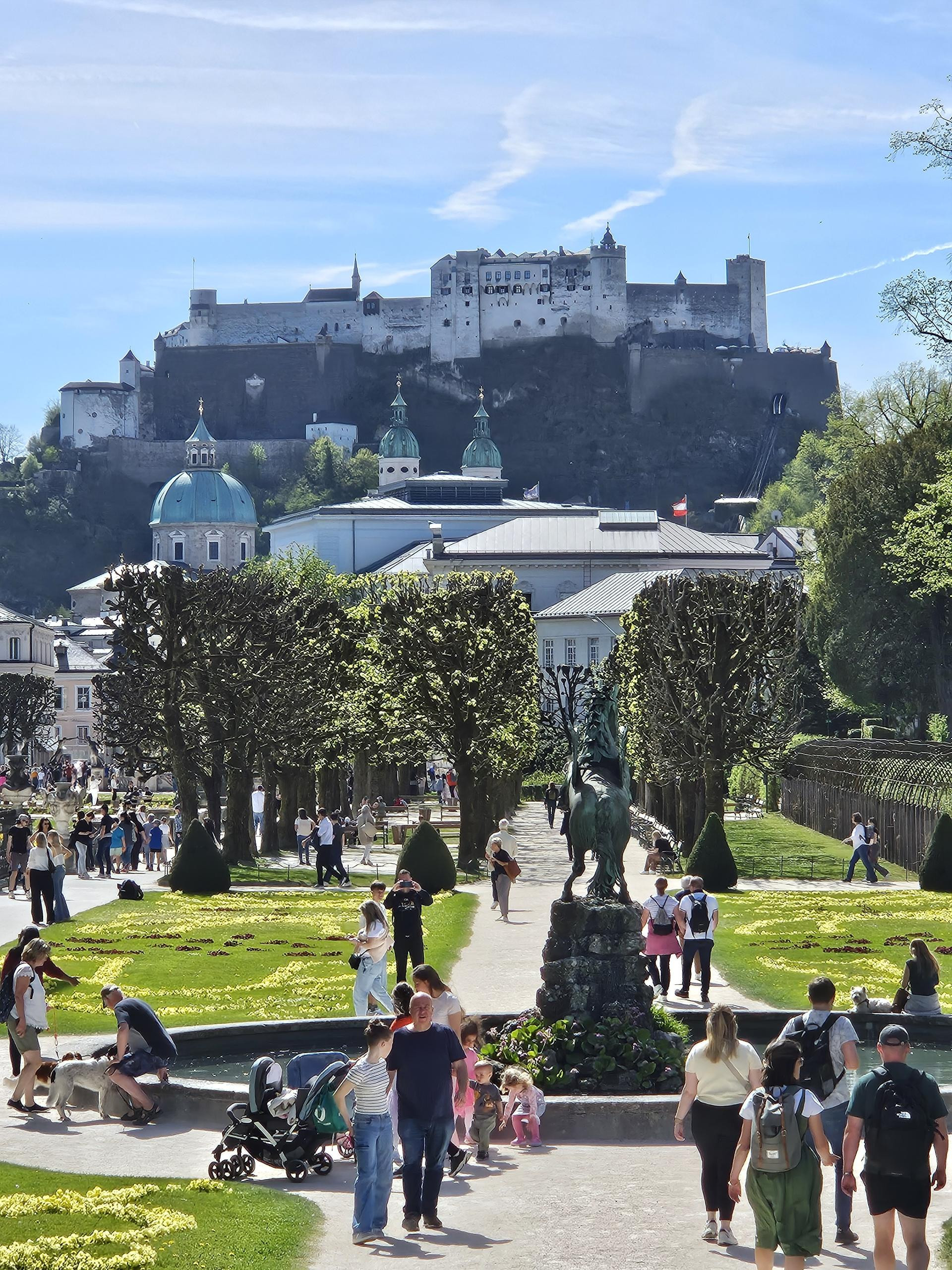 Samo mi nije bilo jasno zašto je u istoj kući u prizemlju otvorena samoposluga Spar, to mi je djelovalo kao "šaka u oko". Zato iznenađenja nije bilo u dvorcu i vrtovima Mirabell sa zapadne strane rijeke. Prešavši pješački most Marko-Feingold-Steg s kojeg puca sjajan pogled na vizuru starog grada, šetnja na toplom proljetnom suncu kompleksom s vrtovima gdje je sniman film “Moje pjesme, moji snovi” bilo je istinsko opuštajuće iskustvo.