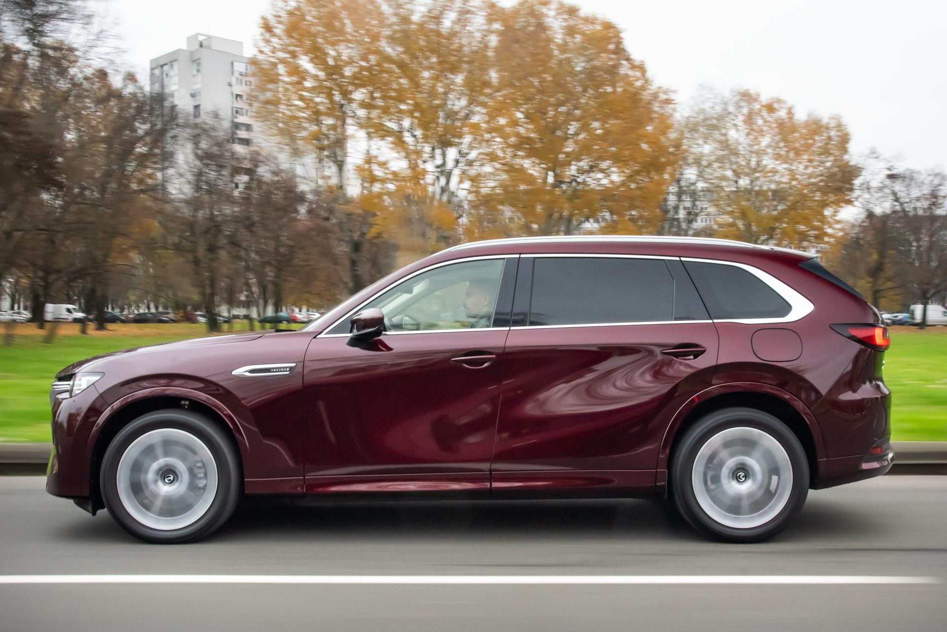 Uparen sa sjajnim 8-stupanjskim automatikom i pogonom 4x4, CX-80 nudi odlične performanse i dominaciju na cesti u svim režimima vožnje. Veliki 20-colni kotači ponekad su glasni na poprečnim neravninama, a krug okretanja od 12,4 metra i pozamašni gabariti ograničavaju lakoću vožnje gradom i parkiranja; povišeno težište također zahtijeva pažnju u bržim zavojima.