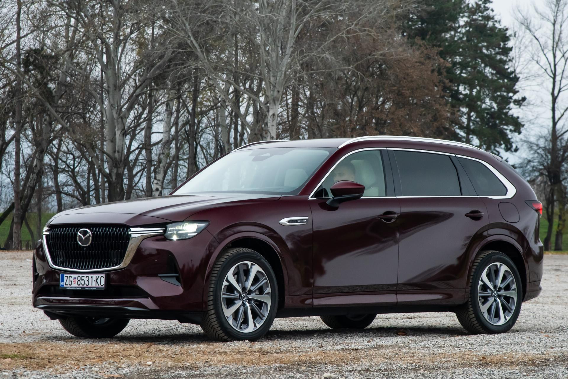 Mazda je tako prošle jeseni predstavila novi veliki SUV s tri reda sjedala, koji uživo izgleda impozantno. Duža je 24 centimetra od CX-60, dok je osovinski razmak platforme 3,12 metra, što je čak 25 centimetara više. Uz širinu od 1,89 m i visinu od 1,71 m, u paketu opreme Takumi Plus i s doplatnom metalik bojom Artisan Red, CX-80 djeluje luksuzno i statusno iz svakog kuta.