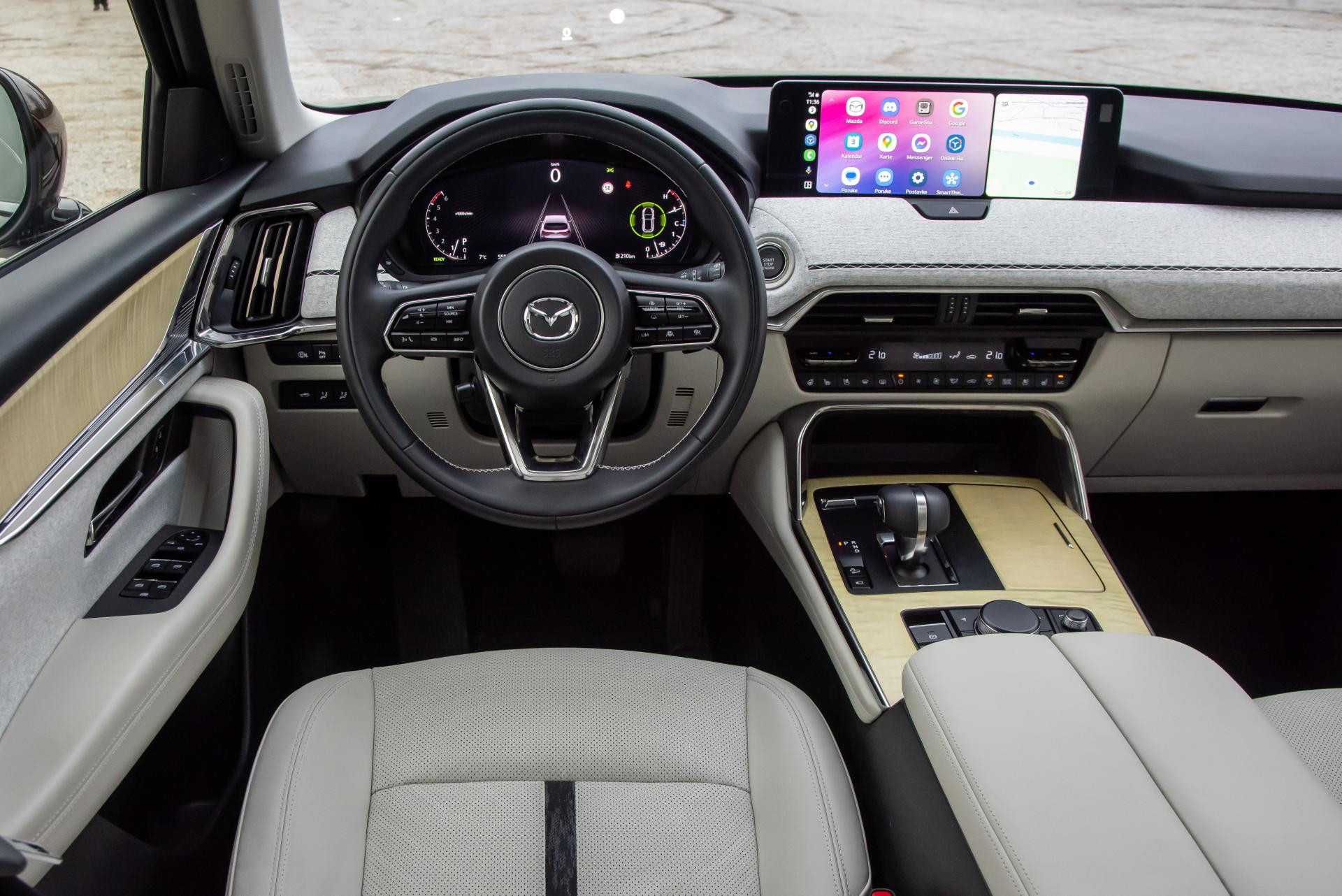 Središnji dio ističe tamni panel s nizom fizičkih tipki za klimu i sekundarne funkcije, dok Mazdin praktičan i jednostavan sustav infotainmenta omogućuje intuitivno surfanje temama putem lijepo izvedenog okruglog izbornika. Prostora u unutrašnjosti ne nedostaje: izvedba s dva pojedinačna sjedala u drugom redu pruža kraljevski smještaj, a klizno podešavanje do 12 centimetara omogućuje modulaciju prostora u odnosu na treći red s dva pomoćna sjedala.