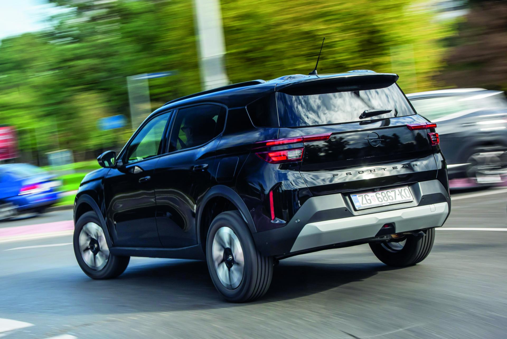Premda ničim ne podsjeća na original s početka devedesetih, Frontera je skladan automobil u čijim proporcijama nije teško prepoznati bratski Citroën C3 Aircross. Sa 4,38 metra, samo je Dacia Duster dulja u klasi B-SUV