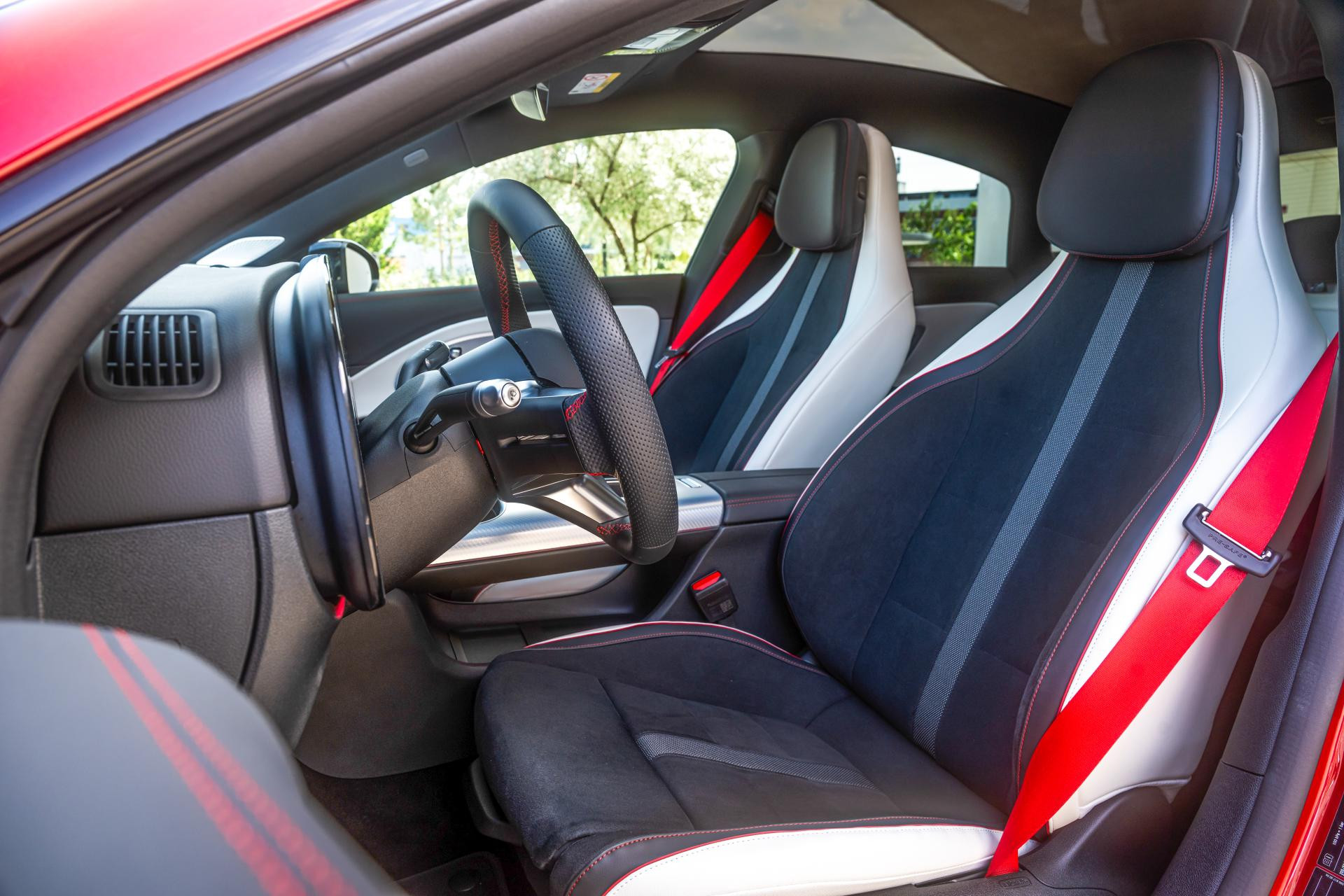 Unutrašnjost, s izuzetkom detalja poput okruglih ventilacijskih otvora i upravljača, baš nimalo ne podsjeća na prethodnika iz 2019. Od retrovizora do retrovizora sad se, naime, proteže staklena površina ispod koje su dva ili čak tri zaslona – lijevo digitalna instrumentna ploča, u sredini zaslon od 36,5 i desno ispred suvozača još jedan zaslon od 36,5 centimetara.