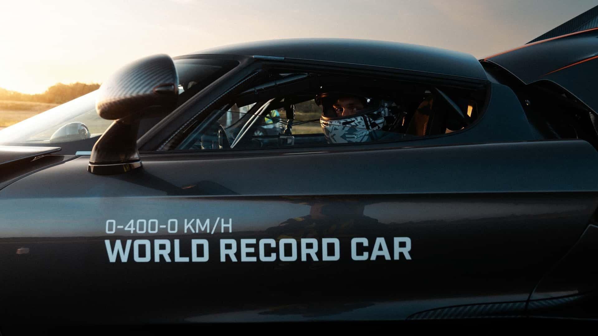 Rekord je postignut 7. kolovoza 2025. na pisti u Švedskoj, a test vozač Markus Lundh imao je daleko od idealnih uvjeta. Kiša je natopila asfalt, a vrijeme je bilo promjenjivo, što je Koenigsegg nazvao neidealnim uvjtima. Ipak, Jesko Absolut je odradio 0-400 km/h za 16,77 sekundi i kočenje od 400 do 0 km/h za 8,44 sekunde za novi rekord. Usput je oborio i rekord za ubrzanje i kočenje 0-250-0 milja na sat (402 km/h) s vremenom od 25,67 sekundi.