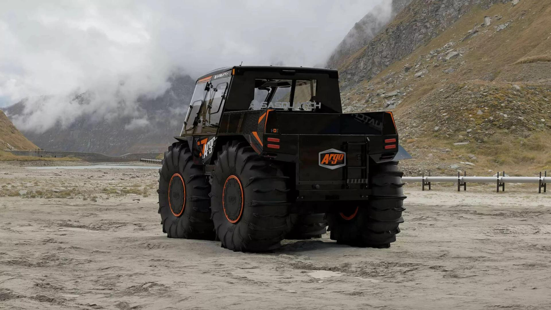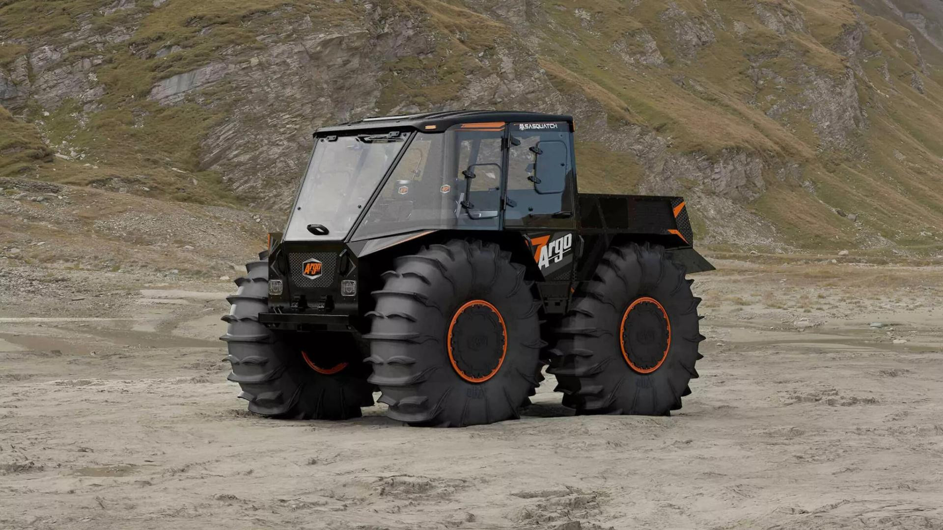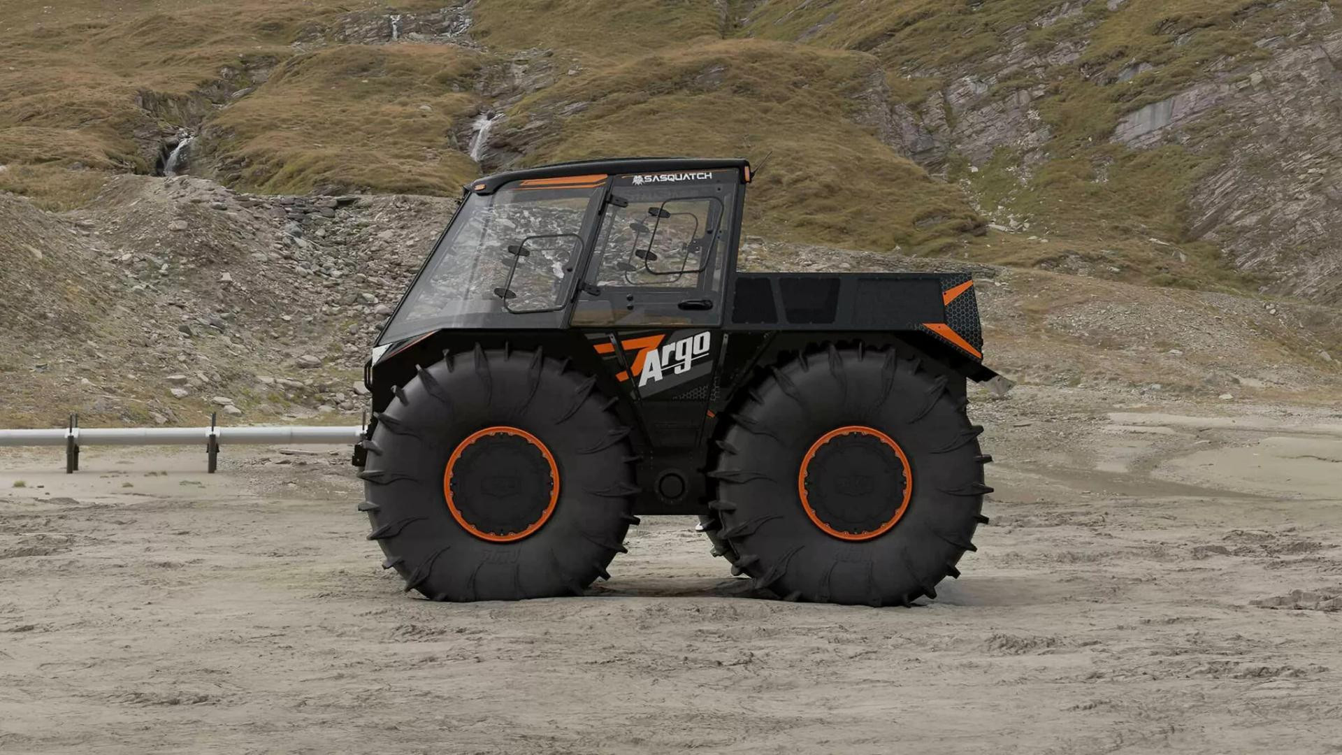 Najimpresivniji dio auta je ipak onaj vanjski. Ogromne gume promjera 71 inč omogućuju automobilu plutanje i kretanje po vodi, dok Argo Terrain Control automatski regulira tlak u gumama ovisno o terenu. Pritiskom na tipke "Snow", "Mud", "Water" ili "Trail", Sasquatch u sekundi mijenja karakter. Može čak okrenuti 180 stupnjeva na mjestu, bez ijednog centimetra vožnje naprijed ili natrag.