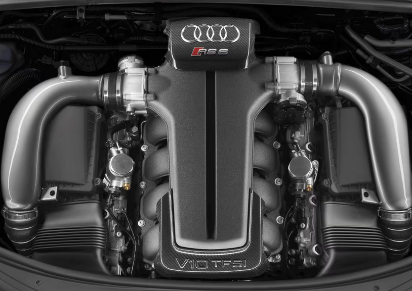 Ispod prednjeg poklopca nalazila se prava energana. Nakon atmosferskog 4,2-litrenog V8 u prethodnoj C5 generaciji, Audi je napravio radikalan zaokret i podario mu 5,0-litreni V10 biturbo koji se ugrađivao i u Lamborghini Gallardo, s 580 KS i 650 Nm okretnog momenta. U vrijeme kada su konkurenti jedva prelazili granicu od 500 KS, RS6 C6 je do 100 km/h ubrzavao za oko 4,5 sekundi, uz stalni quattro pogon i šeststupanjski automatski mjenjač.