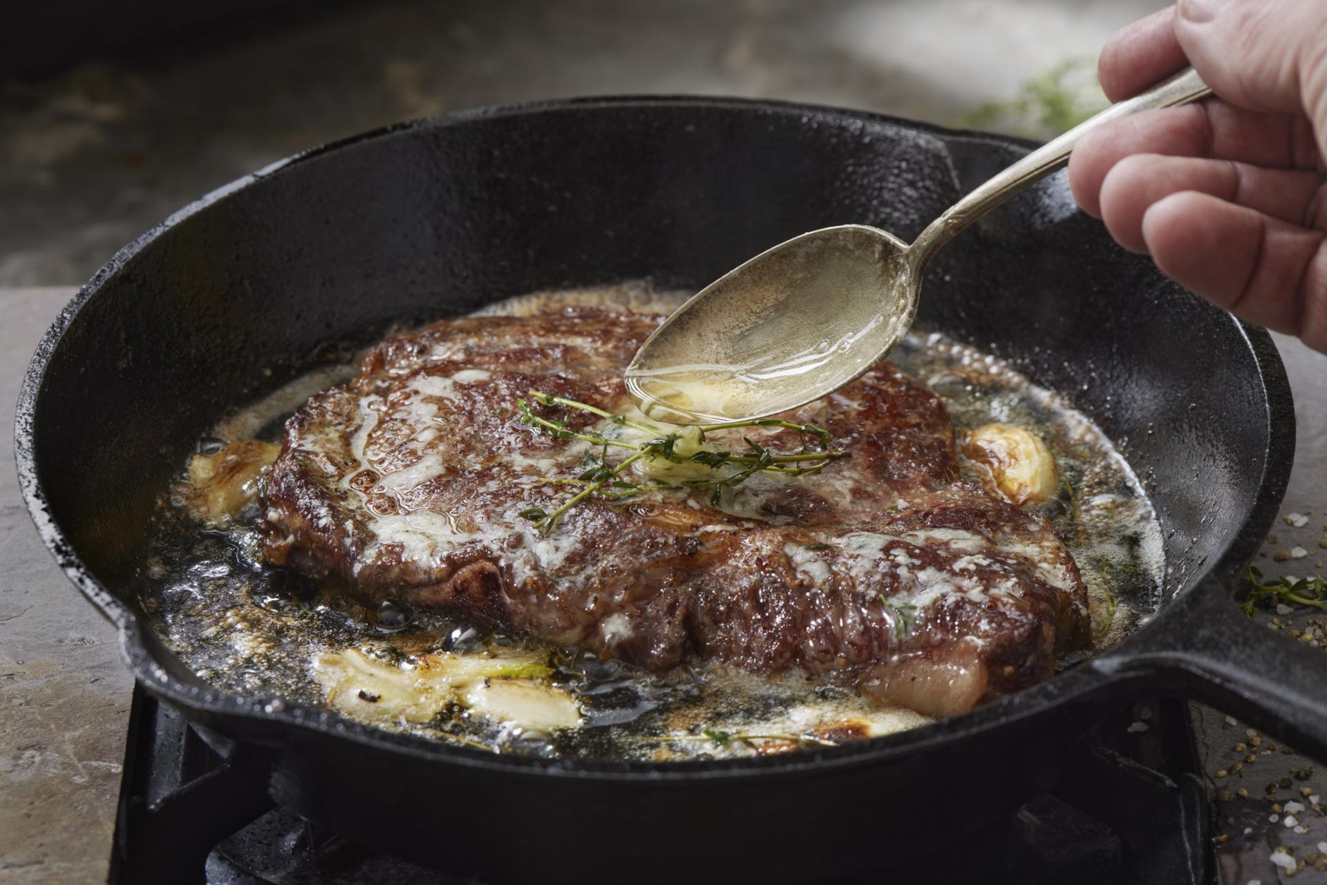 Kod pečenja mesa na tavi vrijedi jedno zlatno pravilo: nemojte ga dirati prije vremena. Odrezak se treba peći bez pomicanja sve dok se ne razvije korica. Kad je s jedne strane gotov, okrenite ga samo jednom. Dodavanje kockice maslaca pred kraj pečenja daje mesu dodatnu aromu i masnoću koja pojačava doživljaj.