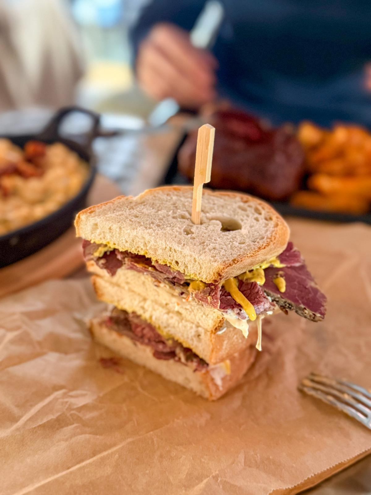 Međutim, ostatak narudžbe nije pratio tu razinu kvalitete. Mac & Cheese bio je prilično razočaravajuć, s umakom koji je ostavljao dojam komercijalnog, generičkog proizvoda u kojem se nije mogla osjetiti struktura ni okus bilo kakvog ozbiljnijeg, karakternijeg sira. Najveći problem bio je, nažalost, upravo pastrami, jelo koje smo naručili s najvećim očekivanjima. Meso je bilo izrazito suho, što je samo po sebi ozbiljan nedostatak. No, povrh toga, bilo je i žilavo, što predstavlja ključnu grešku u pripremi pastramija, čija se esencija krije upravo u sočnosti i mekanoj teksturi začinjenog mesa koja se mora topiti u ustima.