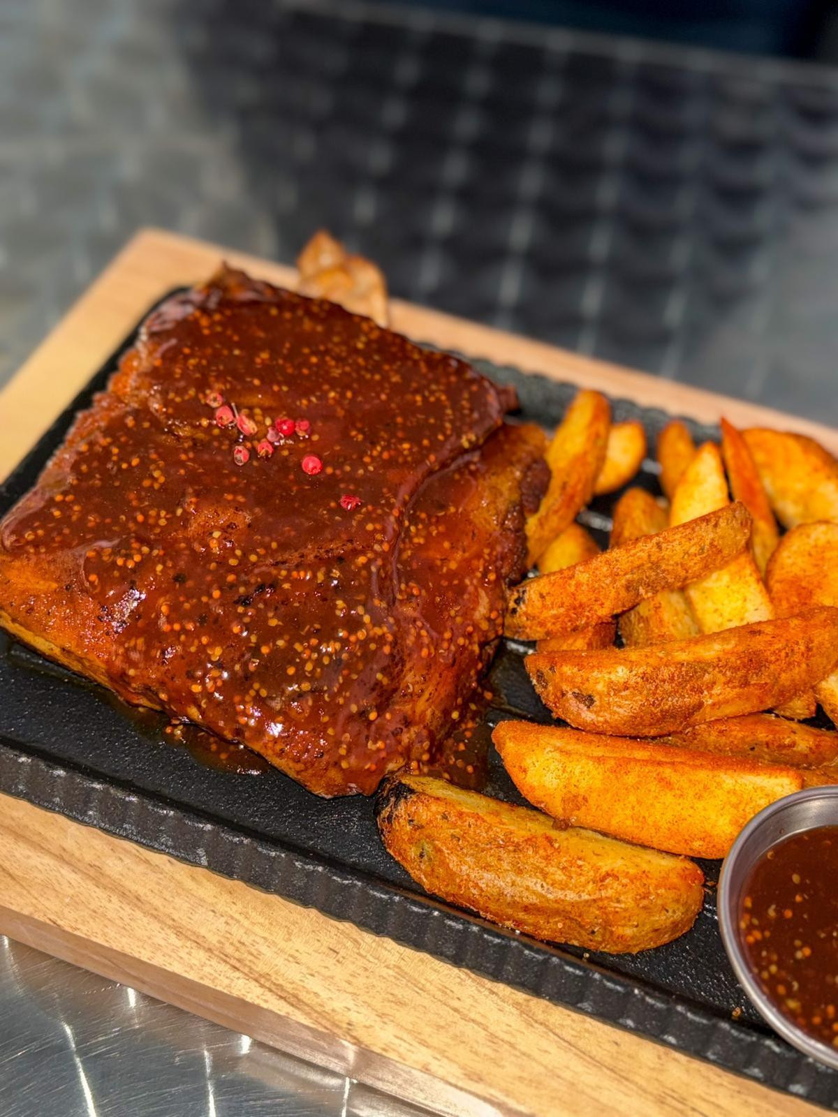 Hrana je stigla relativno brzo, no ono što smo dobili ostavilo je podijeljen, pa i blago razočaravajući dojam. Svinjska rebarca bila su svijetli trenutak ručka; meso je bilo iznimno mekano, sočno i bogato začinjeno, upravo onako masno i topljivo kako se od vrhunskih rebara i očekuje. Tehnički, radilo se o vrlo korektnom primjerku američkog roštilja.
