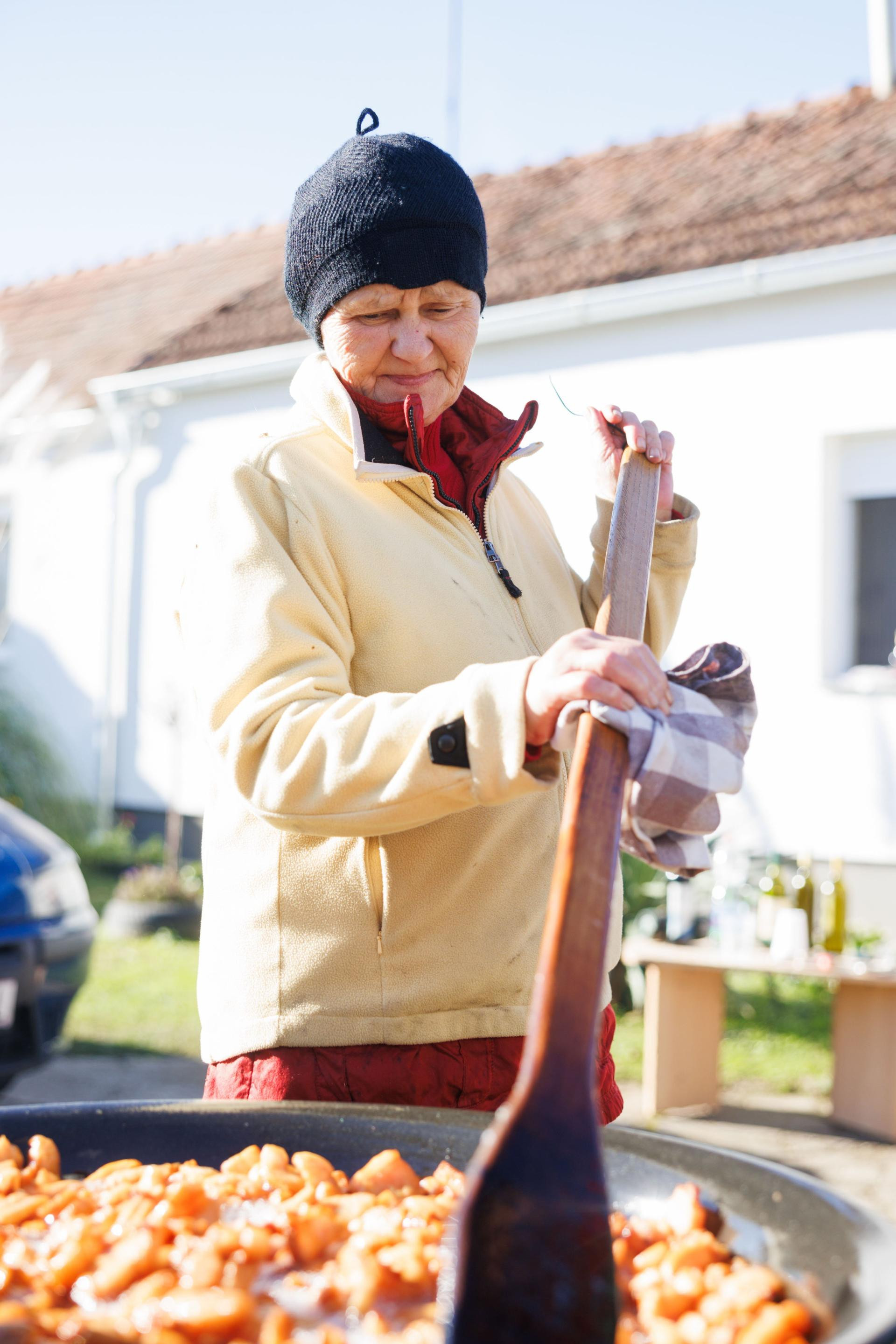 Miris kisele čorbe i pečenog mesa ispunio je prostoriju u kojoj su vrijedne ruke žena iz obitelji Kočiš od jutra pripremale jela. Smijeh, zdravica i neprekidni zvuci tamburice pratili su nas dok smo se gostili kako slanim, tako i slatkim jelima, a prhki salenjaci bili su završni udarac šećera koji nas je nagnao da pomislimo kako Slavonci sigurno imaju neki običaj koji uključuje i to da malo prilegnemo. Na žalost, možda više našu nego njihovu, na dan kolinja za takve pothvate ipak se nema vremena. Štoviše, Kočiši kažu kako zadnjih godina ljudi, čak i kada se odluče za kolinje, rijetko stignu kuhati tradicionalna jela, već se opskrbe samo kobasicama kako bi se uz naporan rad nešto brzo prigrizlo.