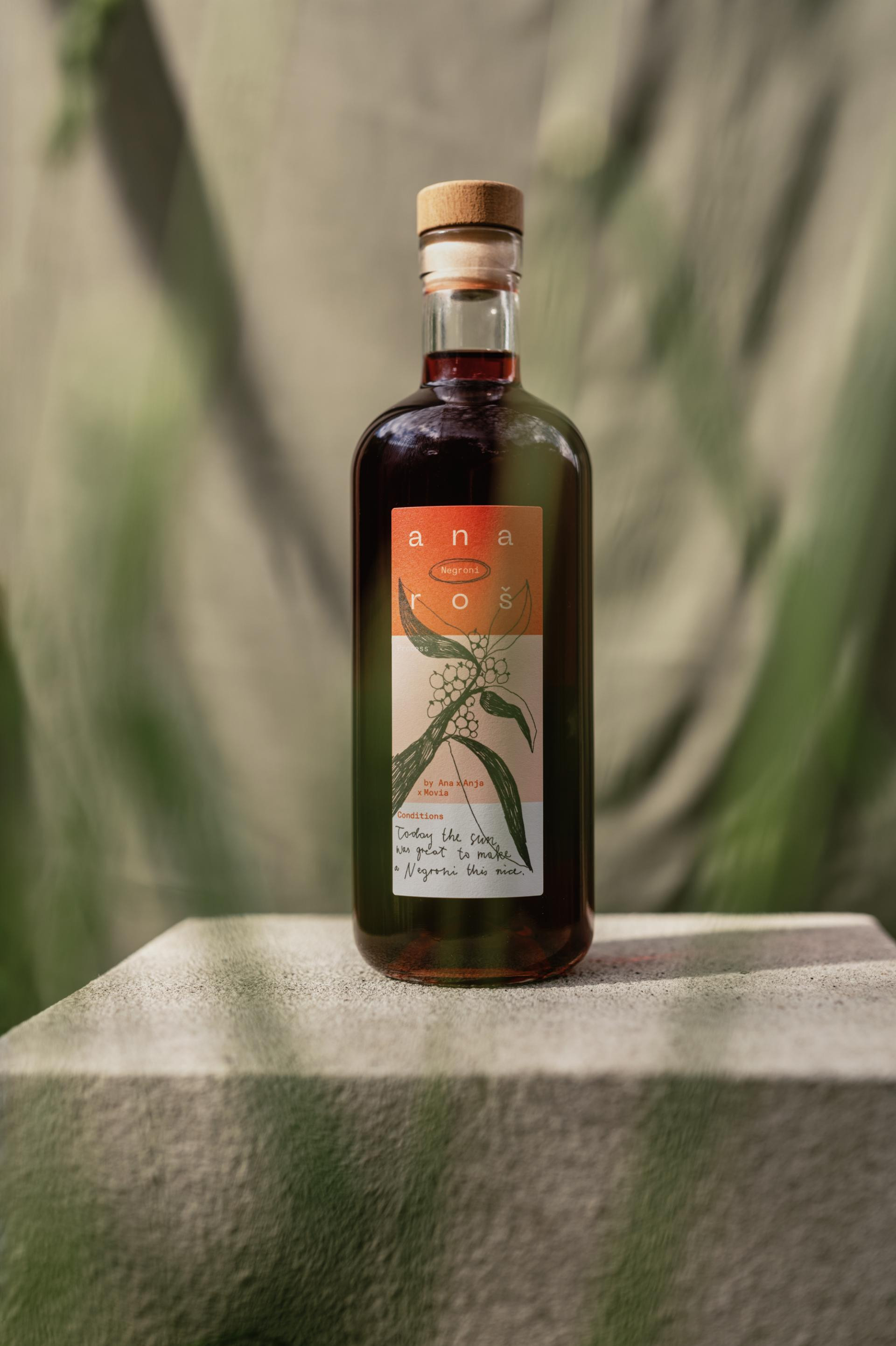 Negroni je chefica radila u suradnji s renomiranom miksologinjom Anjom Skrbinek, inače bivšom glavnom miksologinjom u Hiši Franko, a u boci su spojile biljke uzgojene u dolini Soče s Movia vermutom, inače jedne od poznatijih slovenskih biodinamičkih vinarija. Koristile su i fermentiranu jarebiku i divlji lovor, a rezultat je slojevit, elegantan Negroni spreman za posluživanje s ledom.