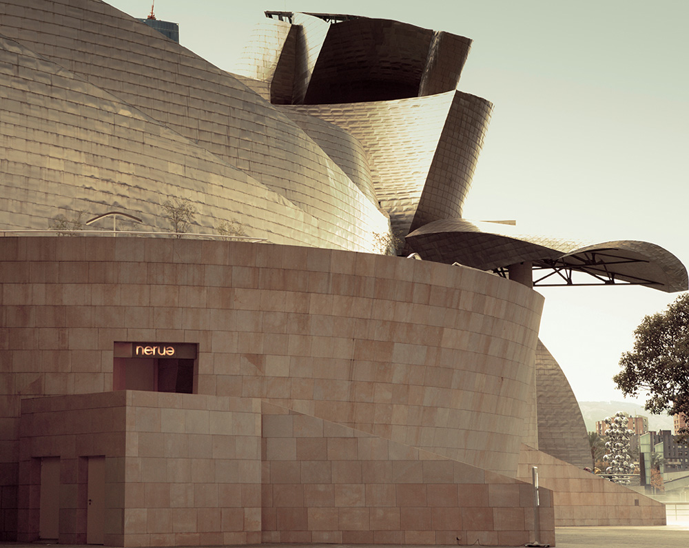 Snježno bijela i minimalistički uređena Nerua smještena u Guggenheimovom muzeju doista je nešto posebno. Ono što je možda neobično je da vam kod samog uređenja pažnju privlači strop kojim dominiraju glatke i zakrivljene linije koje simboliziraju rijeku Nervion po kojoj je sam restoran dobio ime.