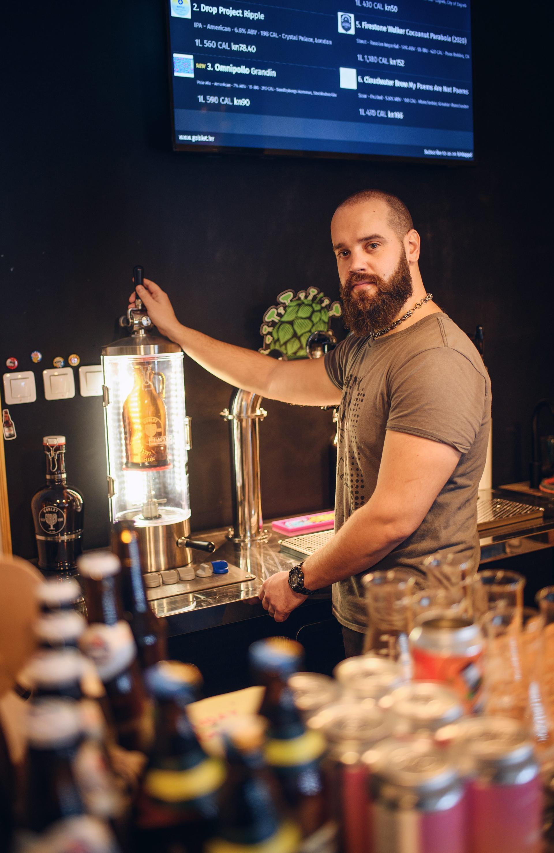 Priča o Gobletu neraskidivo je vezana uz njegovog voditelja, Domagoja Vrana, čovjeka čija je strast prema pivu gotovo mitska. Vran, kako ga većina poznaje, u svom je životu probao i ocijenio više od 19.000 različitih piva, uz nevjerojatan prosjek od šest novih piva dnevno koje pedantno bilježi na aplikaciji Untappd. Njegova predanost ne staje samo na kušanju. Kako bi osigurao da police Gobleta uvijek nude između 550 i 600 svježih i uzbudljivih etiketa, Vran putuje na pivske festivale od Budimpešte do Tallinna, uvozi piva preko vlastite tvrtke MAS Plenum, razmjenjuje ih s kolegama i neprestano traga za novitetima. Njegov životni stil je pivo: ne pije kavu, čaj ni žestoka pića, samo vodu i pivo. Sve ovo pisali smo u intervjuu s njim, koji možete pročitati ovdje.