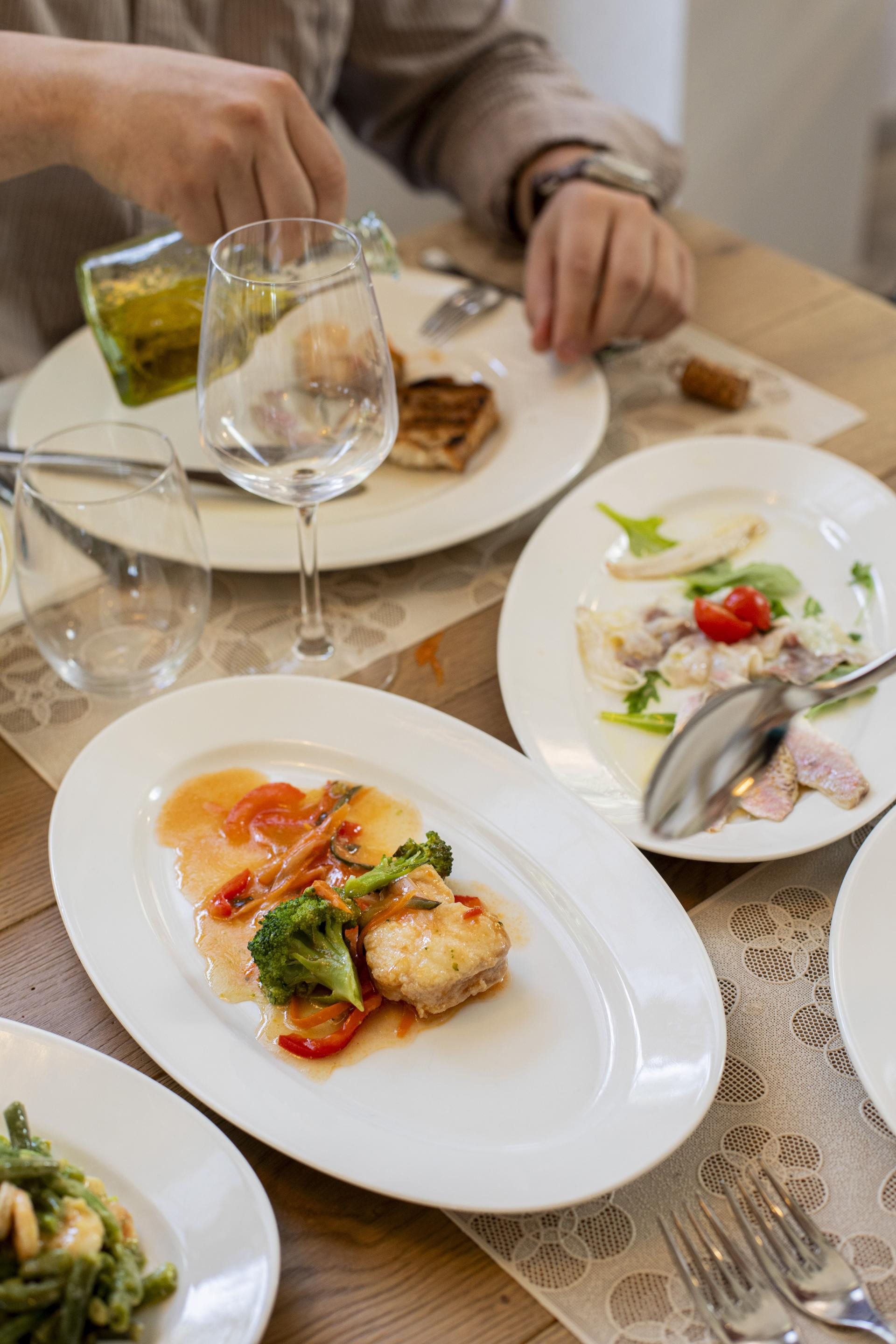 Među našim favoritima zasigurno je gvacet, riba kuhana u umaku od vina i maslinovog ulja, jelo koje utjelovljuje jednostavnost i bogatstvo okusa Mediterana. Mi smo gvacet jeli s repovima grdobine koji su bili baš izvrsni. Poslužen uz klasične, ali sjajne priloge poput broskve (raštike) na dalmatinski, ovo jelo je čista esencija mora i mediterana.
