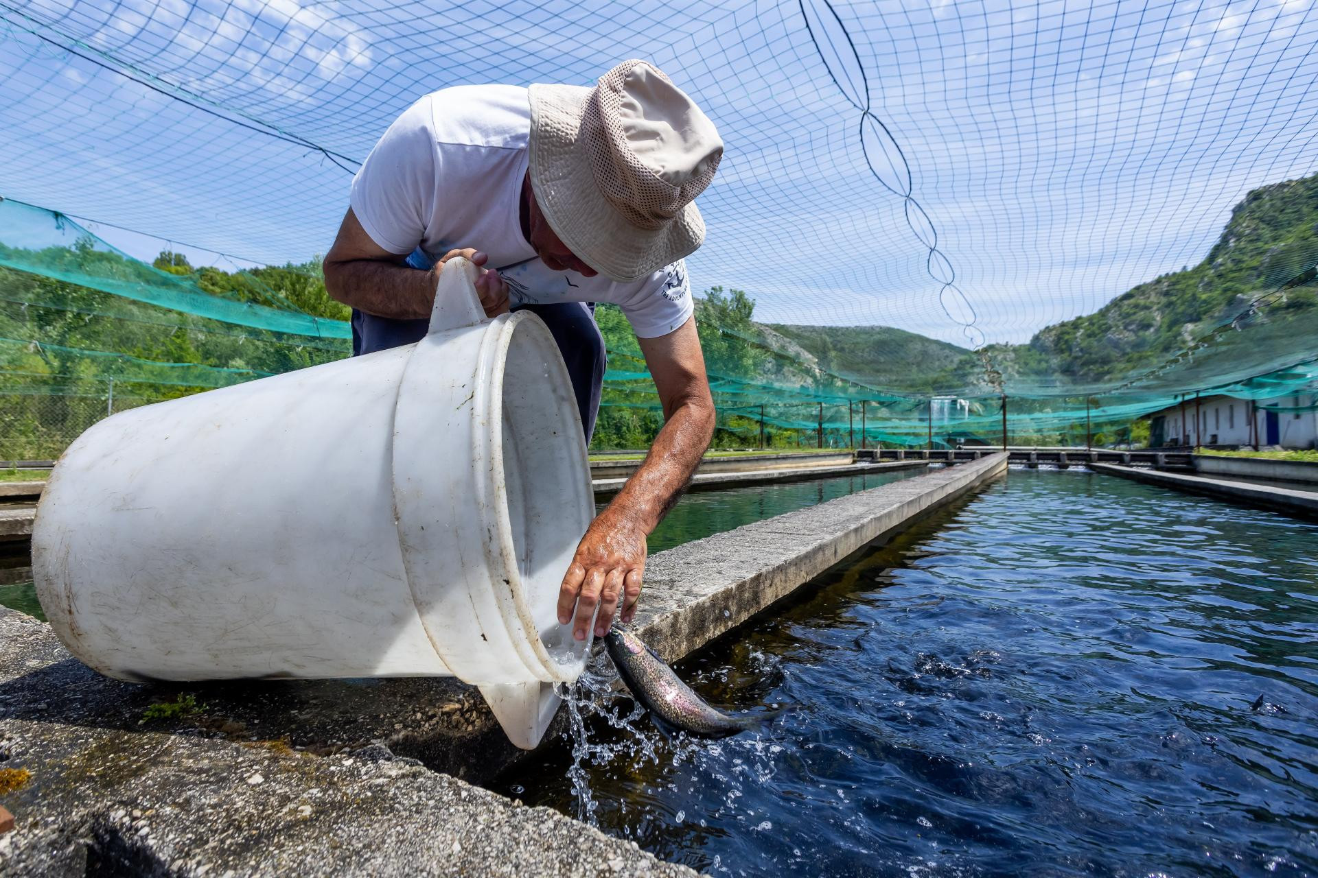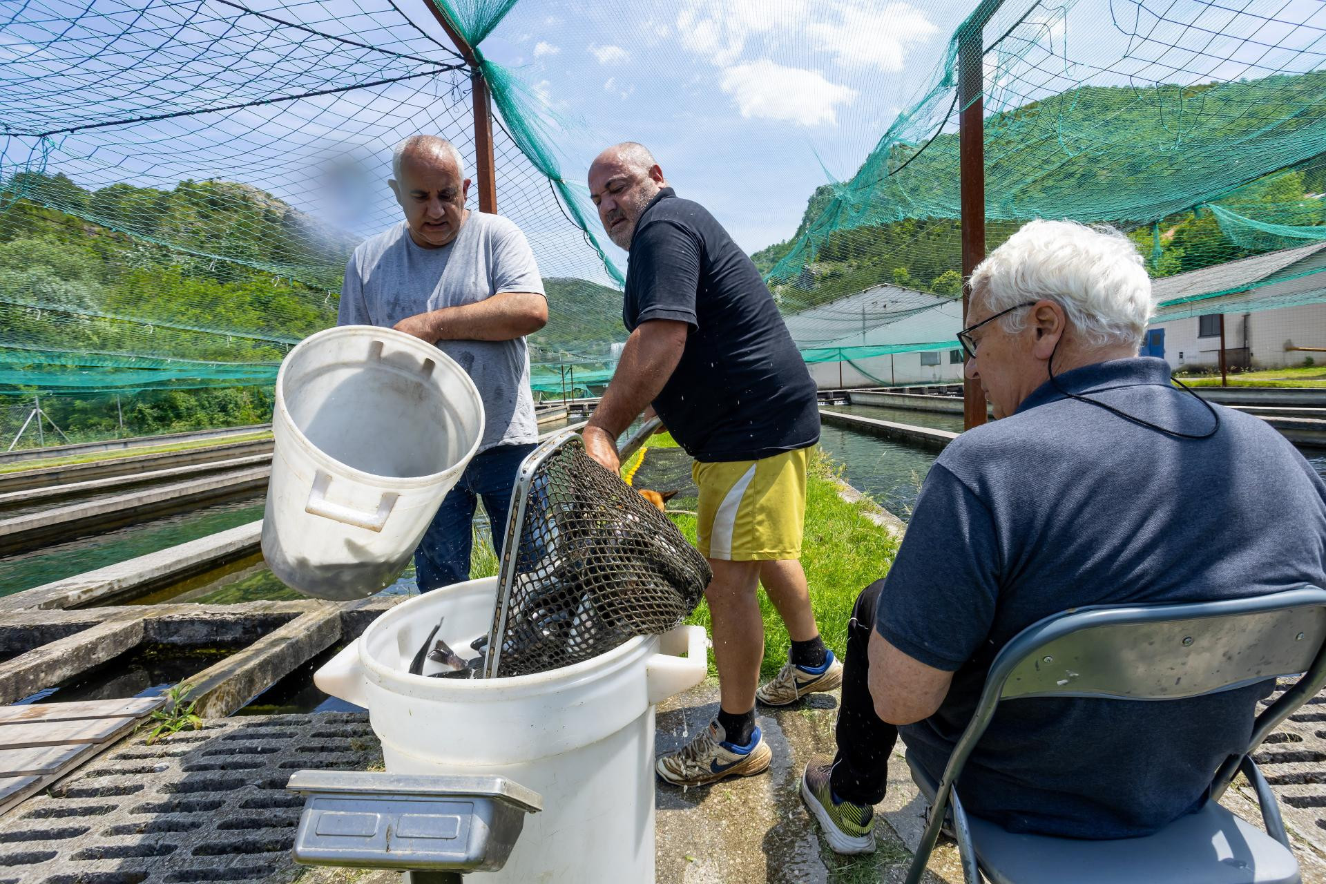 Emin Teskeredžić danas je ovdje kako bi uzeo uzorke i izvagao pastrve koje su razvrstane po bazenima po vrstama i starosti te donio stručnu procjenu o tome treba li im pojačati ili smanjiti, odnosno prilagoditi prehranu za sljedećih mjesec dana. Nitko to ne bi znao bolje od njega. Možda nikome nije ni toliko stalo. Ali kad vidiš te njegove pastrve kako su dugačke i skladno građene, jedre i čvrste, znaš da im je gazda prostro najbolji švedski stol.