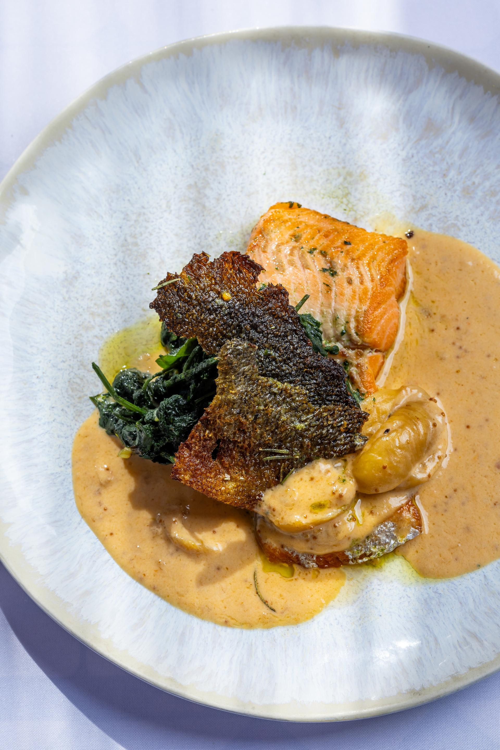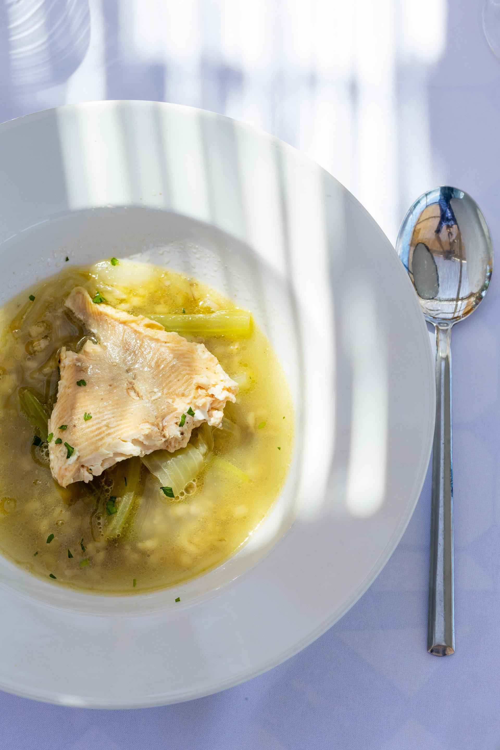 Slijedila je juha od pastrve s ječmom i celerom, i naš pritisak na kuhara: ovo morate uvrstiti na meni, toliko je dobra. Ovakvo jelo ne nalazi se često u restoranskim tanjurima. Juha je bila izvrsna, aromatična i moćna, a ječam idealno kuhan. Meso potočne pastrve, čvrsto, tvrđe, bilo je izvanredno.