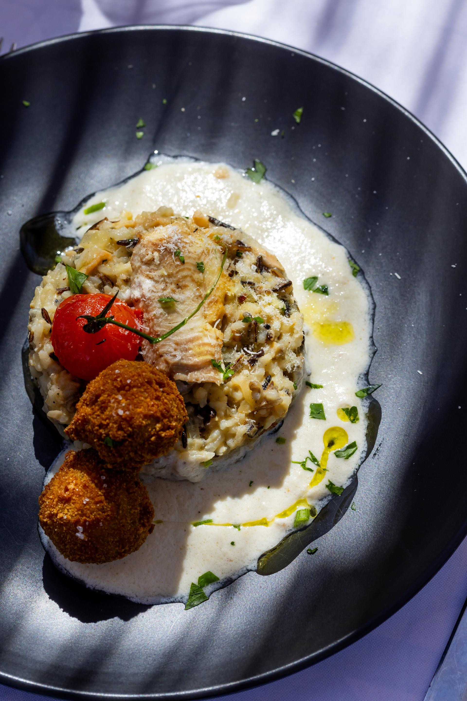 Na trećem tanjuru sad je dimljena pastrva, u rižotu od crne divlje riže. Aromatičnost dodatno podiže umak koji, iako svilene teksture, također donosi izrazit pečat dima.