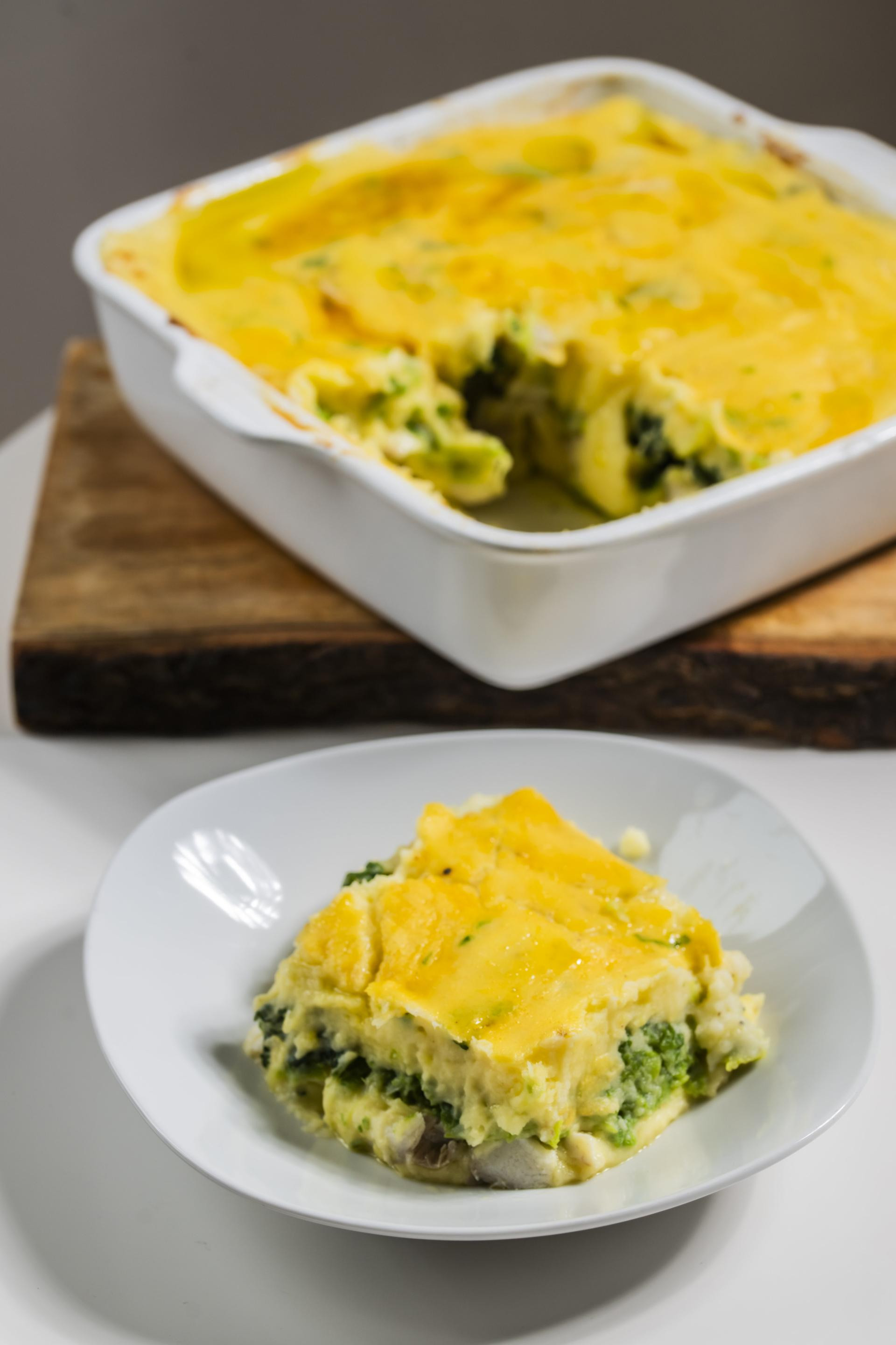 Odsoljeni bakalar kuhajte 10 minuta u mlijeku u koje je dodano malo muškatnog oraščića. Kada se dovoljno ohladi, bakalar očistite od kosti. Skuhajte krumpir, ocijedite ga i napravite pire s dodatkom mlijeka, maslaca, soli, papra, muškatnog oraščića i žumanjaka. Kelj skuhajte i ocijedite. U vatrostalnu posudu slažite sloj pire krumpira, zatim sloj bakalara pa sloj kelja i sitno narezanog češnjaka s maslinovim uljem te još jedan sloj pire krumpira. Na vrh dodajte razmućeno jaje i zapecite u pećnici nekoliko minuta, samo dok se stvori korica na gornjem sloju i jelo porumeni. Dodajte još maslinova ulja i poslužite toplo.
