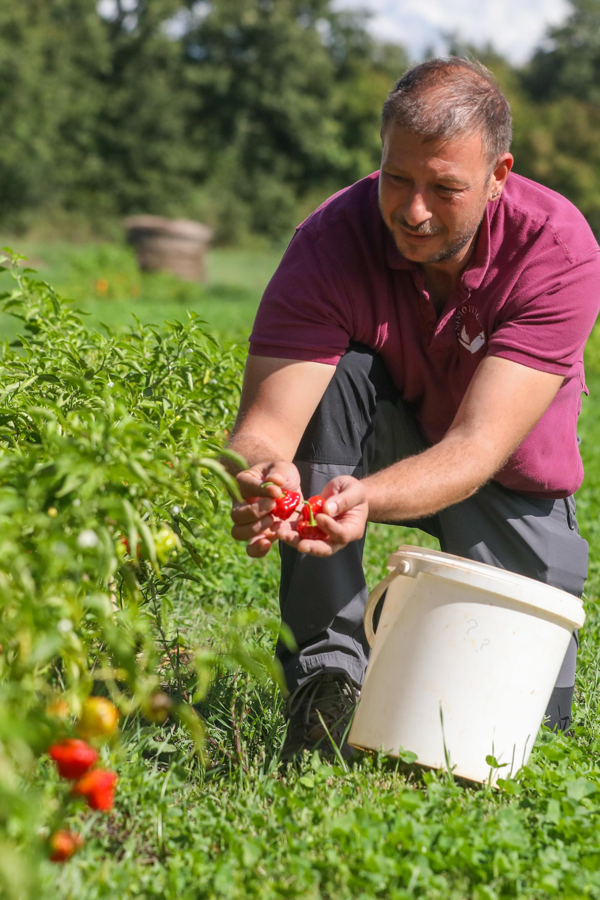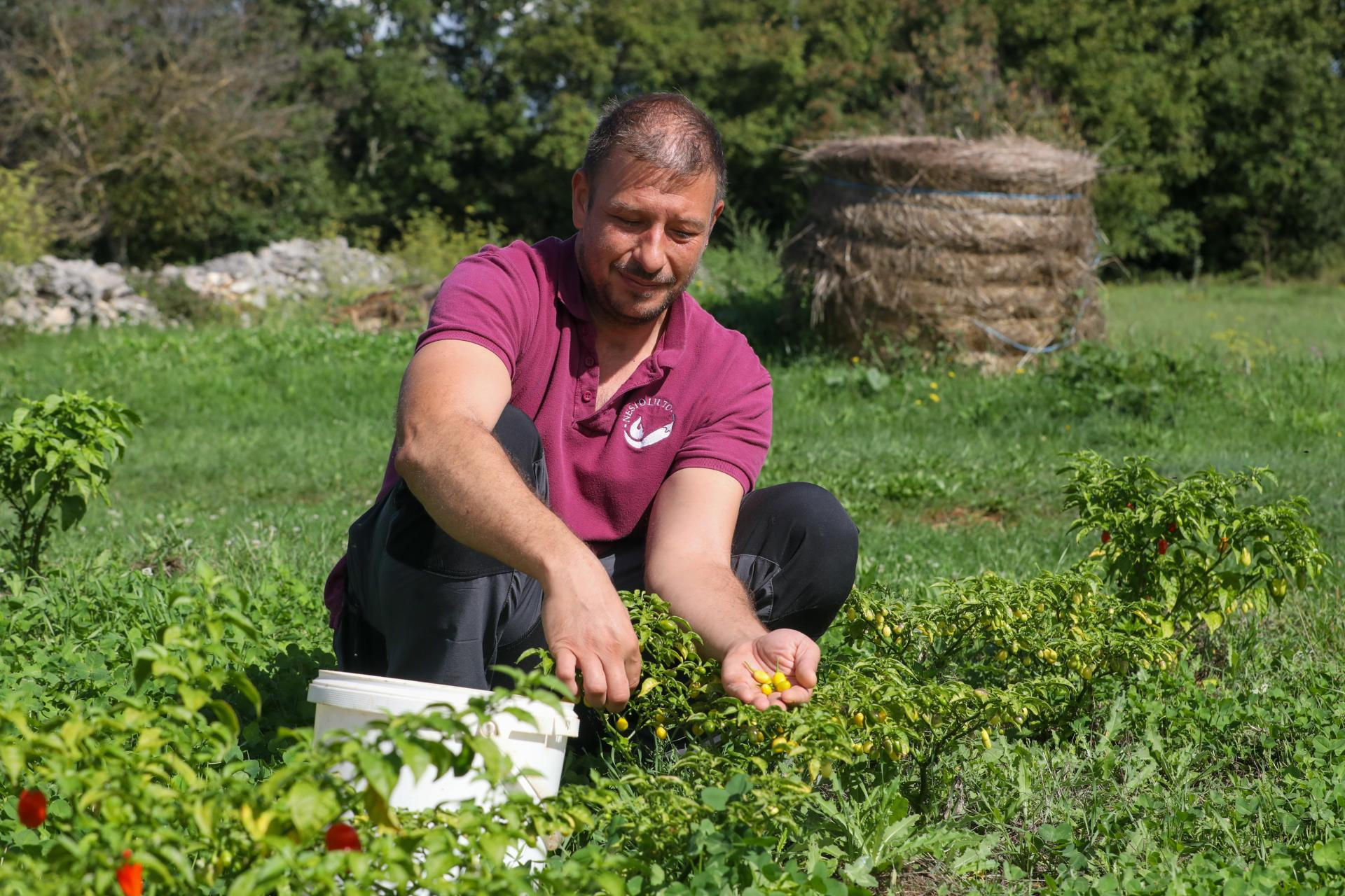 - Odlučili smo se za eko i ove su nam godine njive certificirane nakon tri godine prijelaza. Proizvodi su sljedeća etapa certificiranja. Herbicida nema, sijeno stavljamo kao malč između redova, a između gredica je posijana bijela djetelina, trajnica koja odmara i hrani zemlju, drži hlad, smanjuje eroziju i pucanje tla. Naša je zemlja slabije hranjiva, pa svaka mala stvar pomaže. Strojeva nema koji bi to umjesto nas odradili. To je ručni rad od početka do kraja, opisuje nam Sandro kako izgleda uzgoj njihovih paprika.