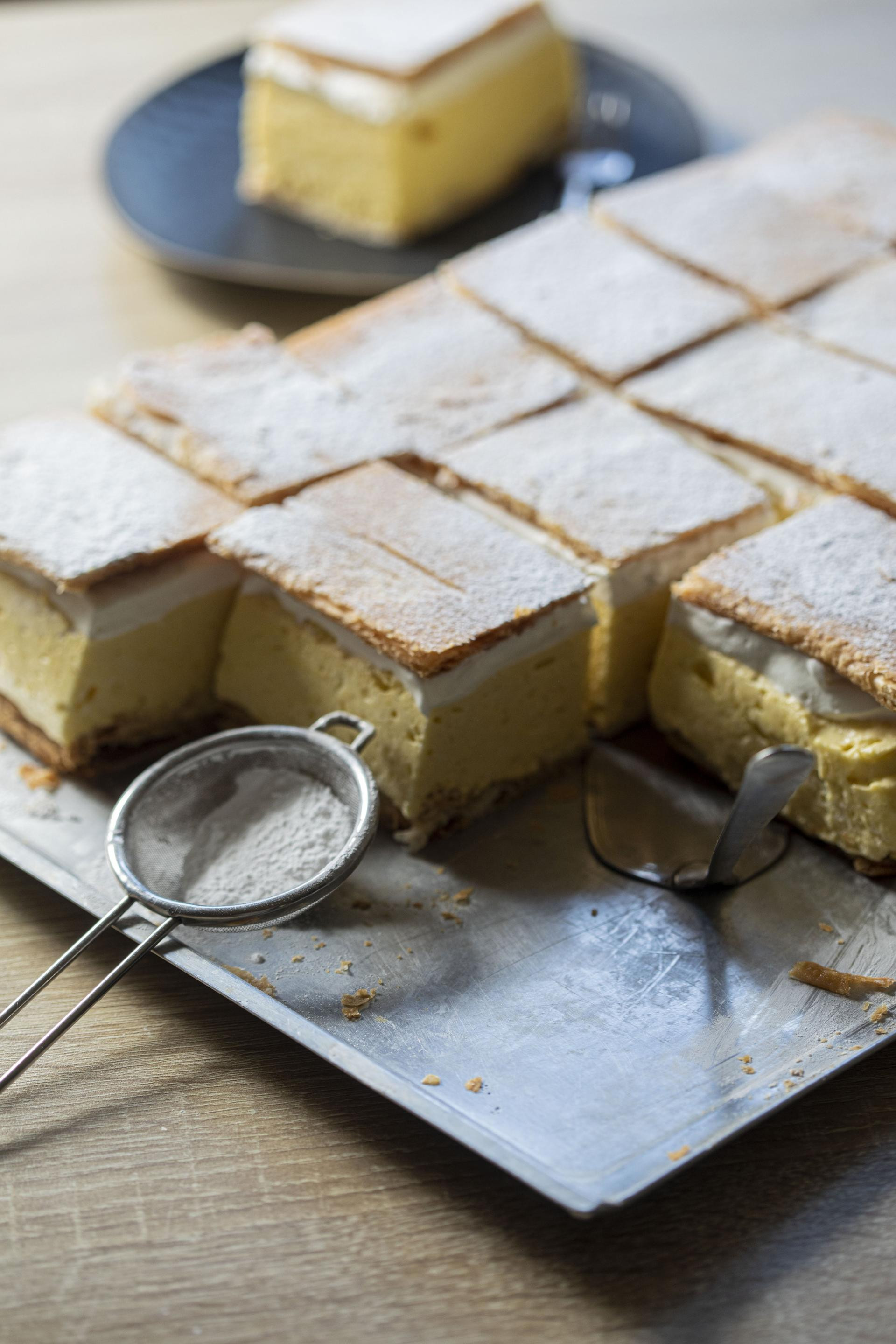 Kremšnite ne znam gdje bih smjestila. U srži banalne: krema od jaja, mlijeka, šećera i malo brašna ili gustina, a opet kompleksne - jer rijetko tko ih napravi kako treba. Sjećam se maminih, iz djetinjstva. Češće bismo ih jeli žlicom iz zdjelica nego vilicom s tanjura. Vječno su frustrirale mamu. Svi smo ih voljeli jesti, a ona, pak, nikako na zelenu granu s njima, svako malo bi se raspale. Pa onda još s tom svojeglavom kremom u paru ide i lisnato tijesto. Na ruku većini ljudi, može se kupiti po dućanima. Industrijsko. Na margarinu.