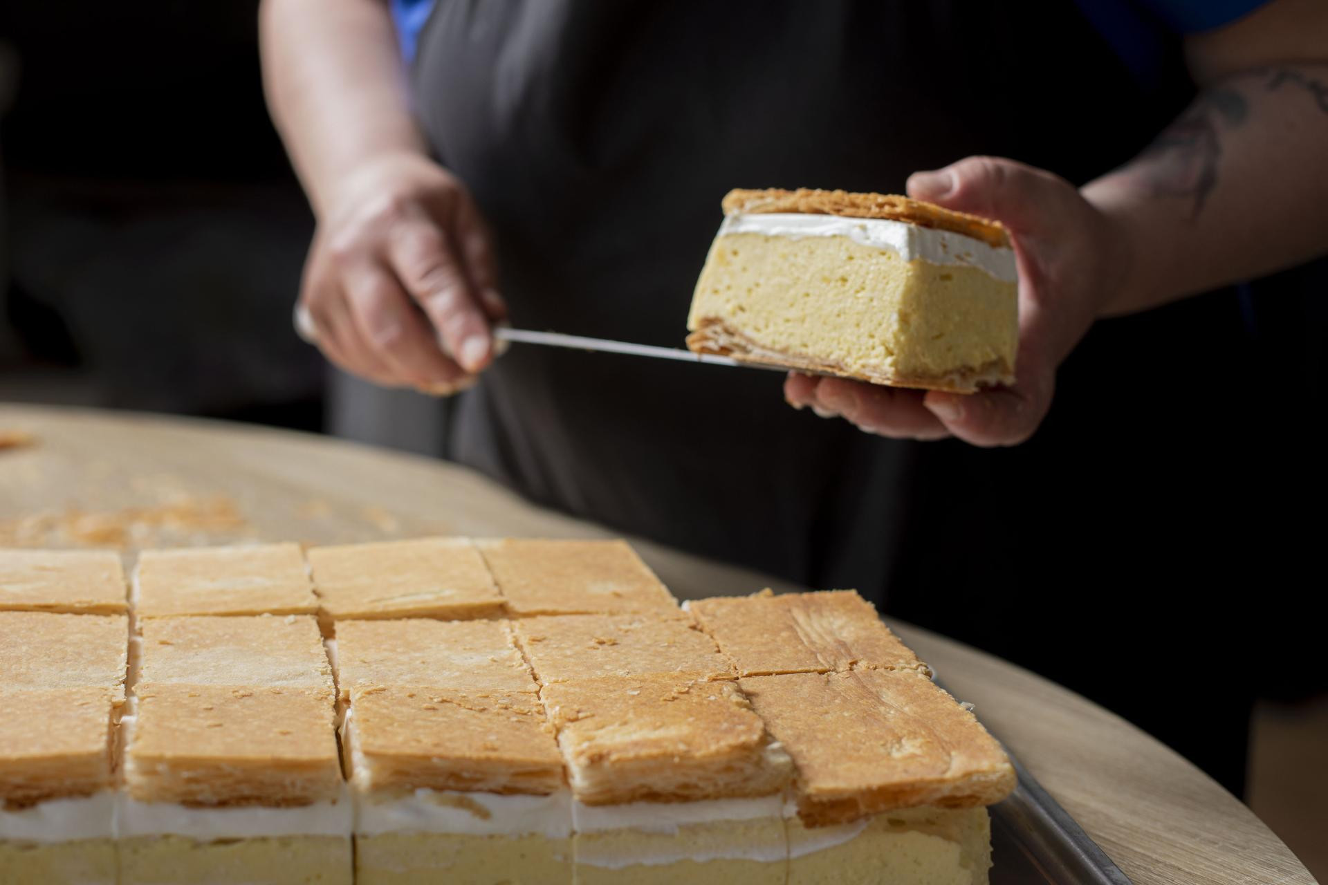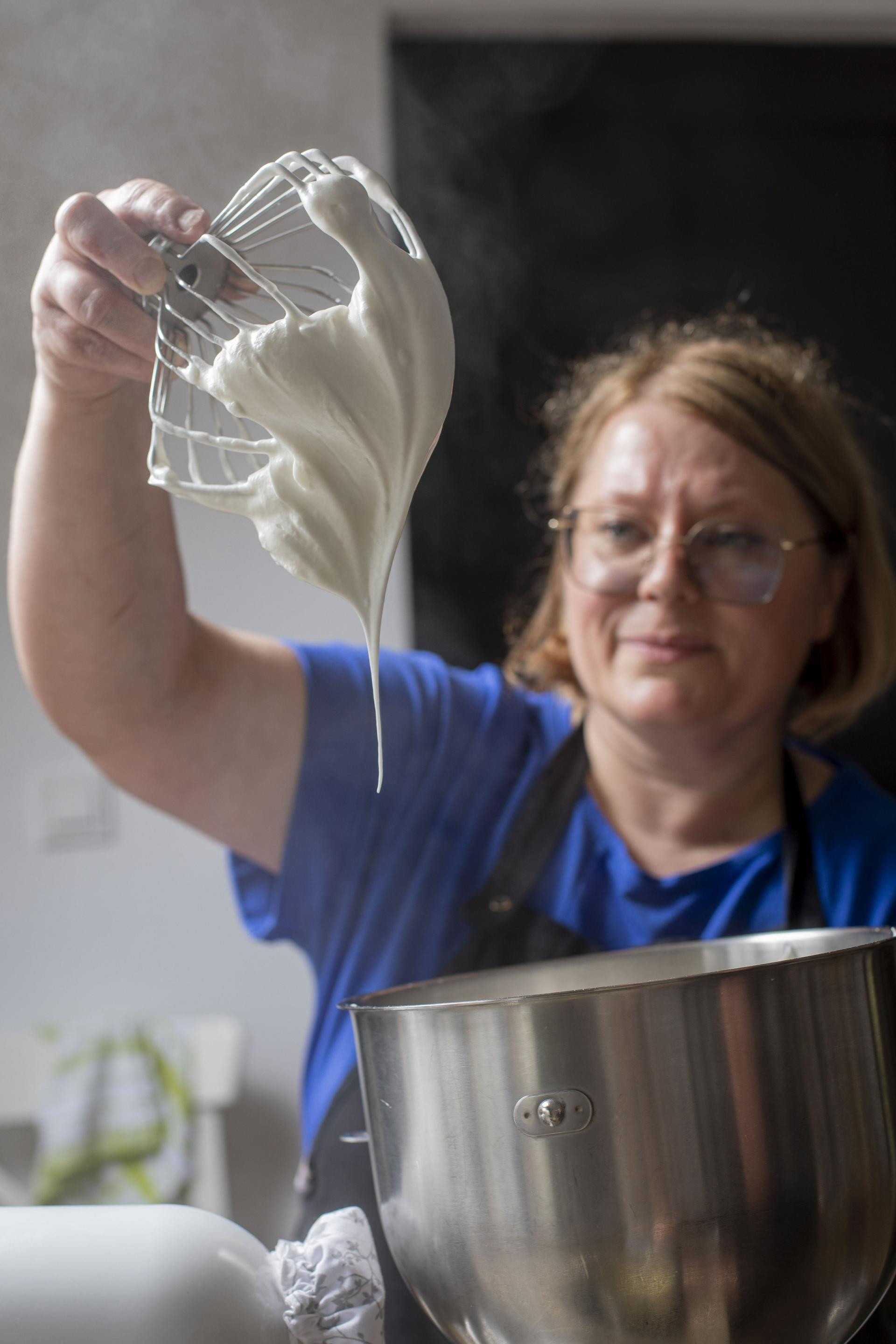 Smjesu sam samo kuhala. Samo miješanje sa snijegom od bjelanjaka radila bi iskusna radnica jer taj je dio, u biti, najzeznutiji. Premalo miješanja - raspast će se. Previše miješanja - raspast će se. Doduše, kad sam se izvještila, pokazale su mi i kako napraviti kremu do kraja. Bilo mi je uzbudljivo naučiti to napraviti, ali i jako bolno. Kipuća krema na tada još dječjoj koži ostavlja doživotni trag.