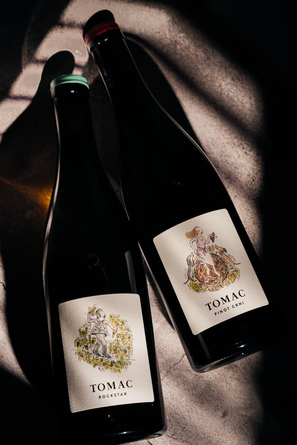 Osim samih vina, vinarija Tomac udružila se s poznatim vinskim ilustratorom Guillaumeom Reynardom, koji je, nadahnut posjetom vinariji i druženjem s obitelji, načinio dvije krasne, živahne etikete koje predstavljaju pretke vinogradare Plešivice.