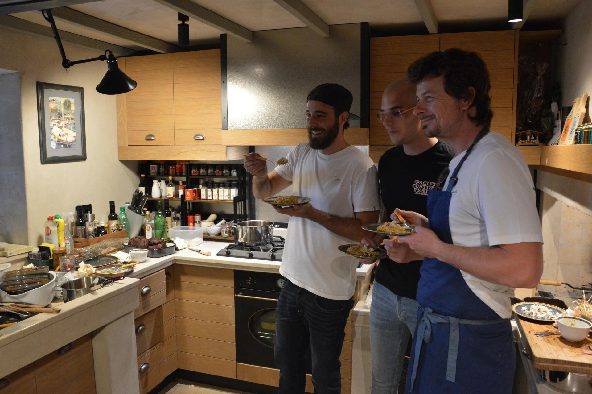 U intimnoj atmosferi prostora za učenje i druženje (i kuhanje!) OPG-a Gržin-Joka, sudionici su imali priliku doživjeti autentičnu atmosferu vrhunske kuhinje. Ne samo vidjeti nego I svim osjetilima sudjelovati u uzbudljivom događanju “iza kulisa”. NIje to bio klasičan show-cooking, bio je to neodoljivi scenario stvaranja nečeg novog, kreativnog I vizionarskog, kroz ono iskonsko, od davnina ugrađeno u kulturu mediteranskog življenja - pripremu trpeze.