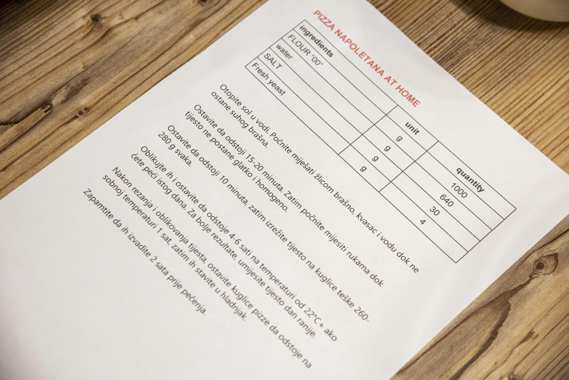 Za kraj, ostavljam vam recept koji nam je Pasquale ustupio, kao i poruku, da ako i vi želite postati kralj pizza druženja, navratite na jednu od njegovih radionica na kojoj ćete naučiti sve tajne talijanske pizze - kako u praksi tako i u teoriji.
