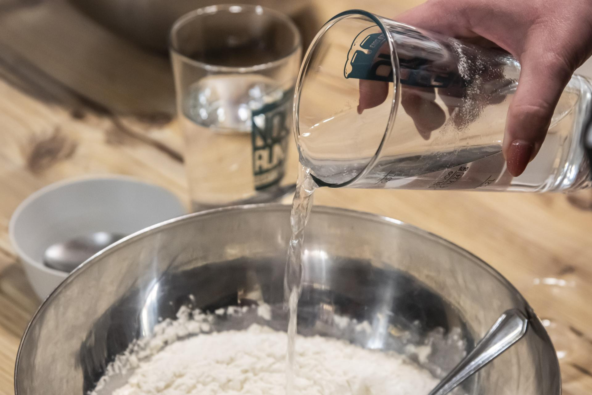 Počelo je s brašnom - tip "00", fino kao najmekši puder i spremno za akciju. Na njega se dodaje voda - ne vruća, ne ledena - idealno sobne temperature. Prava hidratacija je, kazao nam je Longobardi najmanje 60 % - ni premalo, ni previše, nego baš toliko da tijesto bude prozračno, ali upravljivo. Više vode jednako je više mjehurića, a to je ono što tražimo.