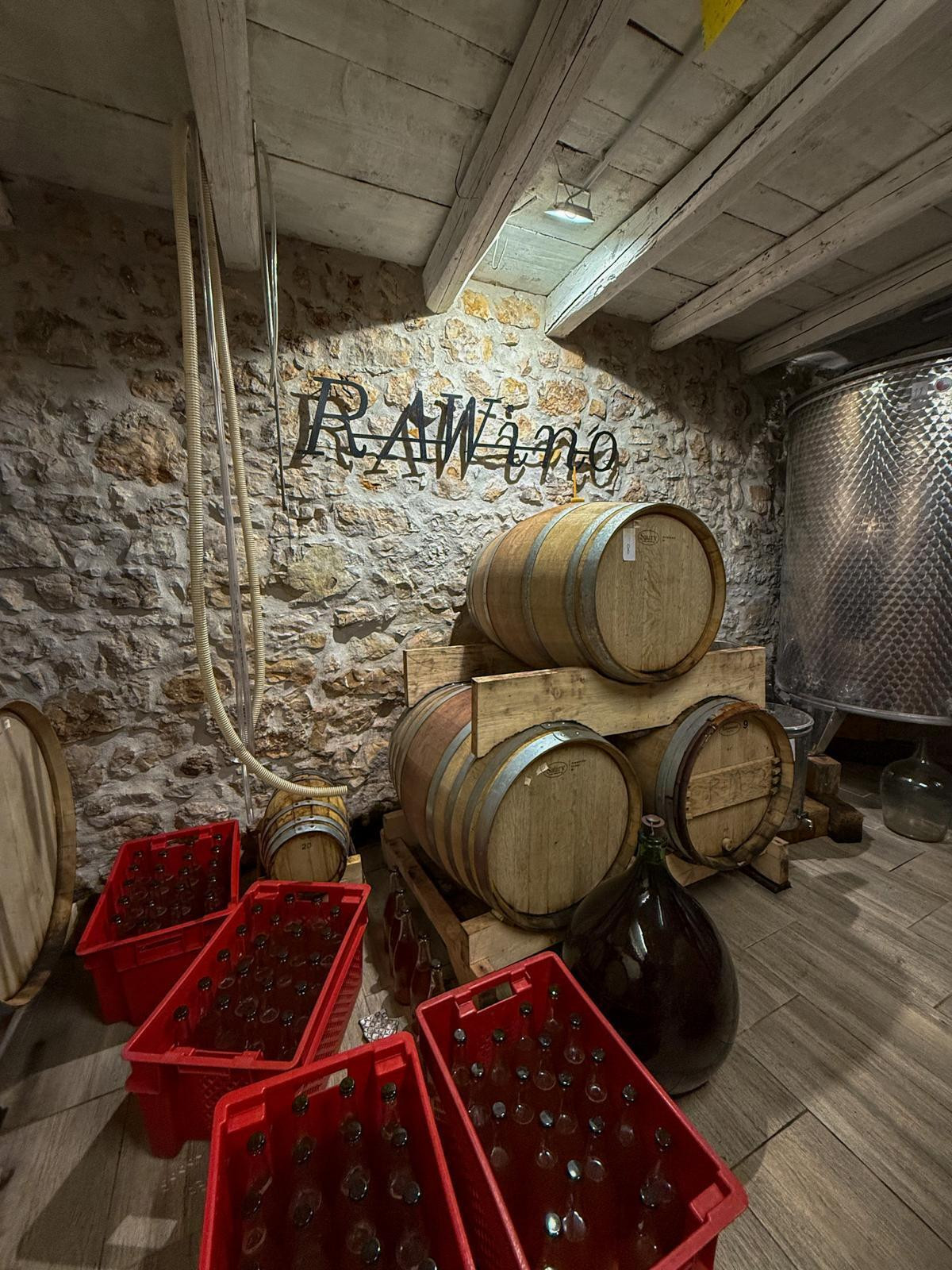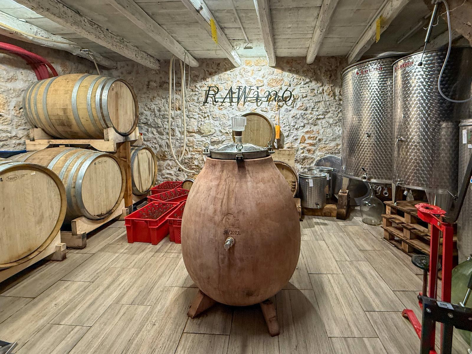 Podrum je smješten u spomenutoj djedovoj kući, što je sa sobom donijelo niz građevinskih zahvata, od nadstrešnice protiv zagrijavanja do sanacije prokišnjavajućeg krova. Ipak, srce proizvodnje nije u podrumu, već u vrtu. Ondje su u zemlju trenutačno ukopane tri gruzijske qvevri amfore, kapaciteta od 400, 500 i 1500 litara, gdje se odvija sva spontana fermentacija grožđa. Pokraj njih, još dvije, od 200 i 1000 litara, čekaju svoj red za ukop. Ove brojke same za sebe možda ne znače mnogo, ali jasno govore o mikro-proizvodnji koja doseže oko 2000 boca godišnje. Filozofija od gline do gline zaokružena je keramičkim bocama. Kako je Ravnik objasnio, one su logičan nastavak prirodnog ciklusa, a uz to, za razliku od stakla, u potpunosti štite vino od utjecaja svjetlosti.