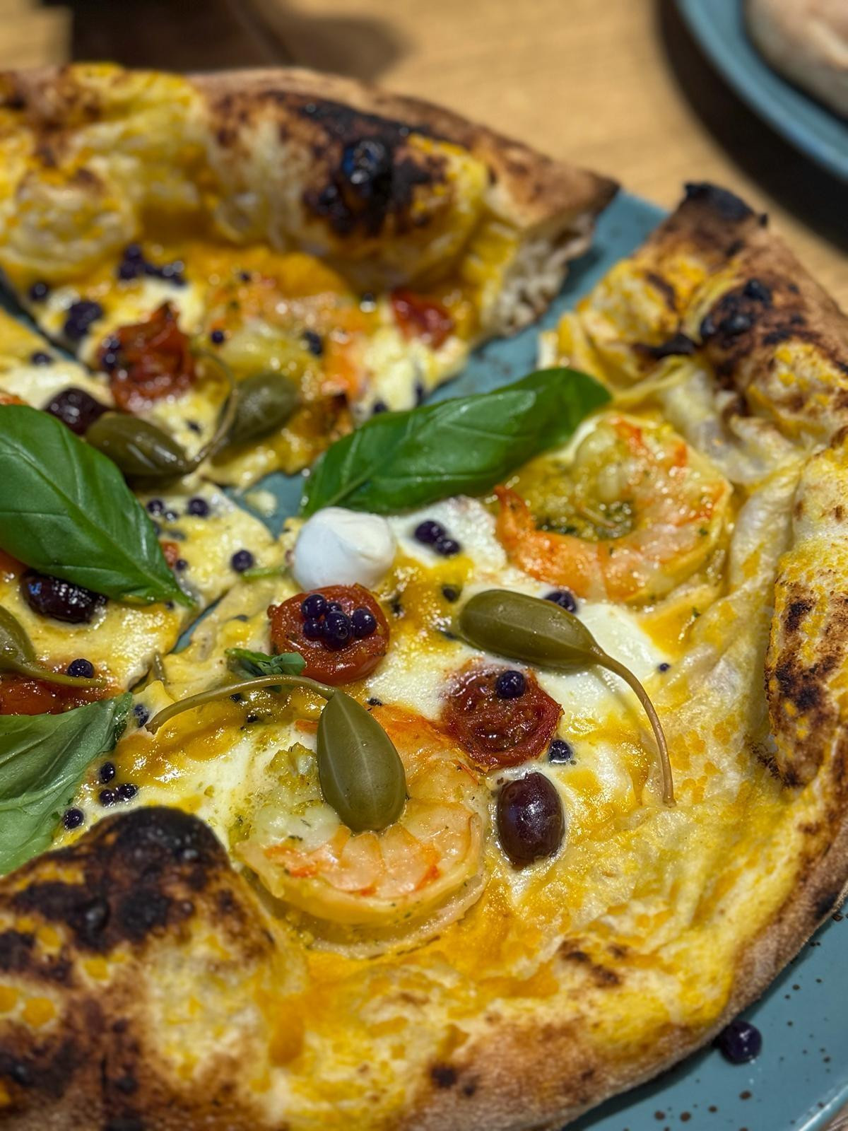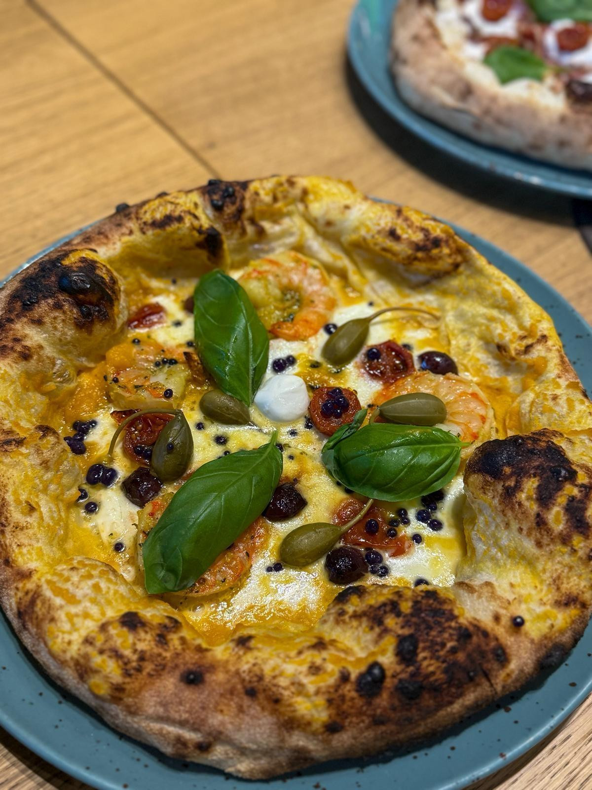 Morsku priču donosi Fabijanić svojom pizzom Blush Response (13 €). Riječ je o iznimno laganoj pizzi koja se bazira na mozzarelli, velikim i mesnatim kaparima, češnjaku i raznim citrusima. Na njoj su i velike, prethodno spomenute slatke kozice marinirane u korici limuna i naranče te perle od plavog graška. Same perle vrlo su domišljat dodatak pizzi, a Fabijanić ih sam priprema, što sve skupa čini ovu morsku pizzu zaista posebnom, kakvu možda nikada do sada nismo kušali.