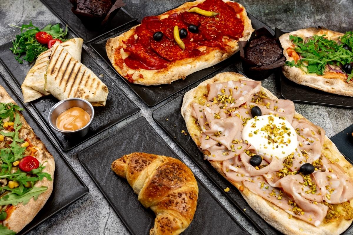 Za sada u ponudi imaju razne kajgane, muffine, kroasane i bogate tost sendviče na tri kata koji se najčešće naručuju za doručak, a nude i burgere s junećim pljeskavicama i razne tortilje s mesom, tunom ili povrćem. Na meniju imaju i pinse, kombinaciju pizze i focaccie čija je prednost laganije i mekanije tijesto koje se najčešće radi od mješavine rižinog, sojinog i zero-zero brašna.