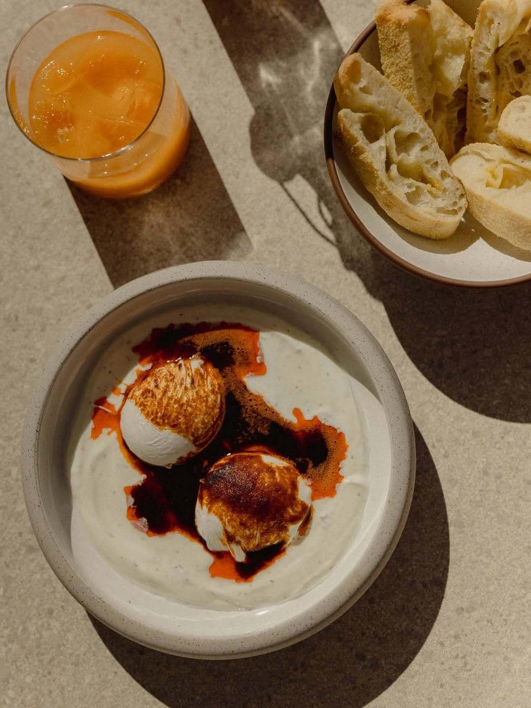Gastronomski, fokus je na dva odvojena, ali komplementarna koncepta, a detaljan jelovnik dostupan je na njihovoj preglednoj mrežnoj stranici. Prvi je autorski brunch, dostupan od 9 do 15 sati, gdje se nude klasici poput avokado tosta na domaćem kruhu, više varijacija jaja Benedict (klasična sa šunkom i Royal s lososom), ali i jela s bliskoistočnim utjecajem poput turskih jaja s jogurtom ili shakshuke. Večernji jelovnik, dostupan od 18 sati, znatno je ambiciozniji. Započinje sekcijom raw bara i predjela gdje se ističu Tuna Tris Crudo (sashimi, tataki, tartar), Ceviche by Hrvoje Zirojević (brancin, škamp, kapesanta) te selekcija ‘Pršuti svijeta‘ (Pata Negra, San Daniele, Drniški).