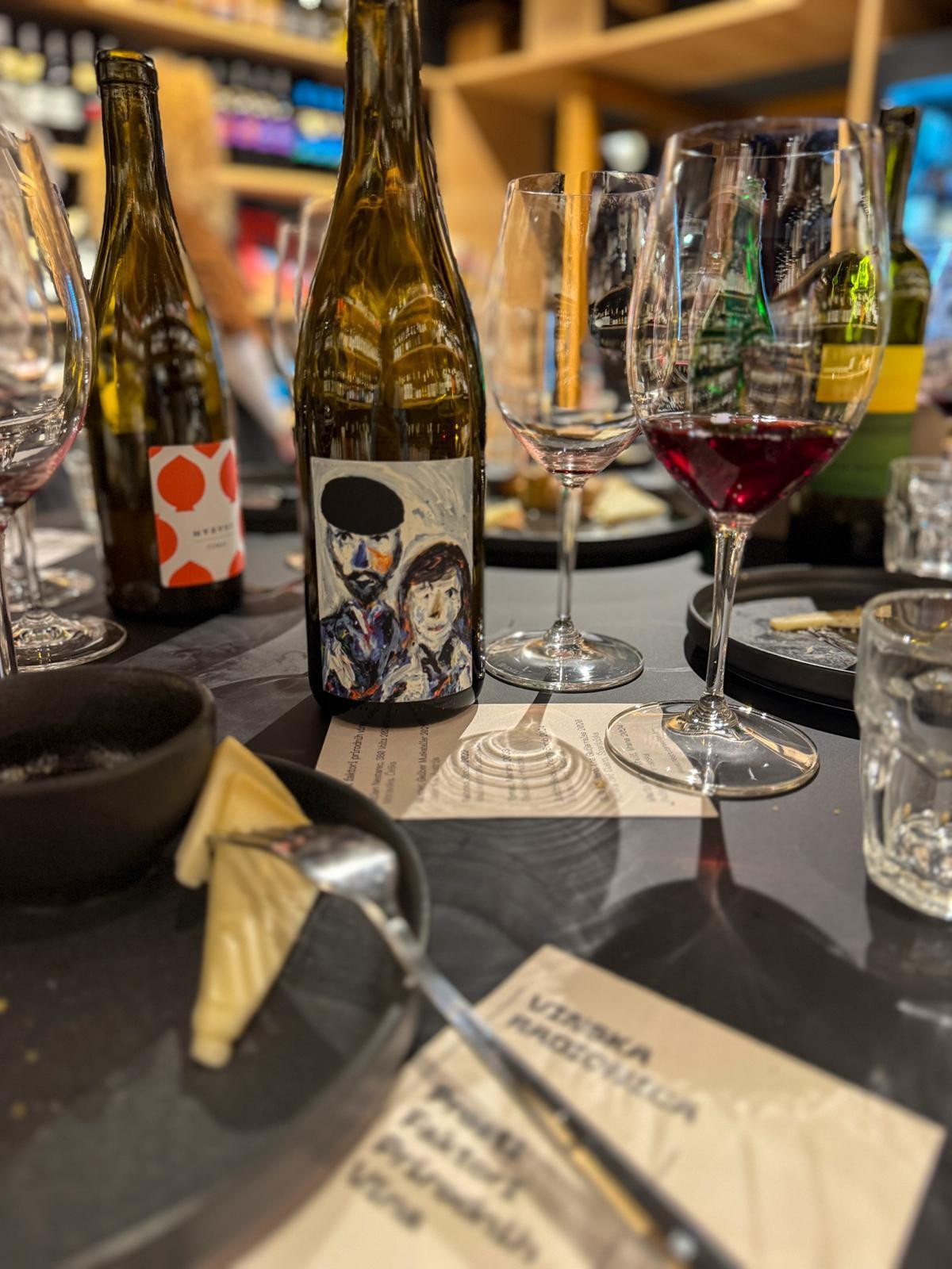 Posljednja dva vina bila su značajno taničnija, punijeg tijela i s višim alkoholima, čime je Novak pokazala i "ozbiljniju" stranu prirodnog vinarstva. Prvo od njih dolazi iz poznate španjolske regije Ribera del Duero – Finca Los Guijarrales 2020 vinarije Goyo García Viadero, napravljeno od autohtone sorte graciano, briljantno vino. Nastja je ovom bocom pokazala da u svijetu minimalne intervencije postoje i "sigurnije" opcije koje se mogu svidjeti široj publici. Za kraj, poslužen je plavac koji se prethodno prozračio – Plavac mali Vrana 2024 pelješke vinarije Bartulović. Ne bilo kakav plavac, već onaj s jednog surovog vinograda na kamenitim padinama iznad Prizdrine, uzgojen potpuno bez kemijskih tretmana. Čisti izraz terroira, vino kojim je Novak pokazala koliko plavci mogu biti stilski različiti, pitki i posebni.