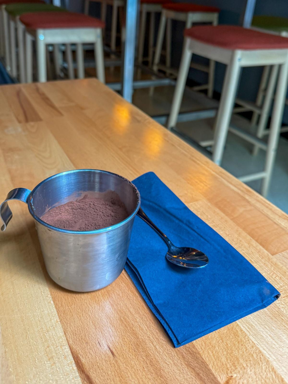 Nažalost, kad smo u Tender stigli na radni dan oko 14 sati, chefa Petra Tucmana nije bilo jer je bio na pauzi, pa nismo mogli kušati topla jela. Što nam se nije svidjelo, jer smo uz koktele došli kušati i dnevna jela. Ipak, probali smo njihov tiramisu. Poslužen je u manjoj limenoj posudici, klasična talijanska receptura s dodatkom amaretta bila je bogata, kremasta i dobro posuta kakaom. Za 4 € ova izvedba je izvrsna.